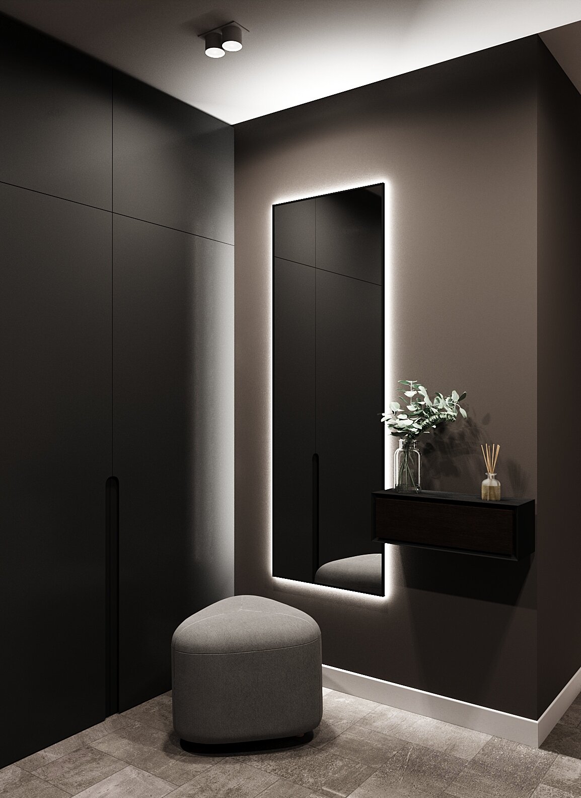 Купить Зеркало с подсветкой в алюминиевой раме, настенное, ONE MIRROR, 180х60 см. Черное. Свет: Нейтральный белый 6000К