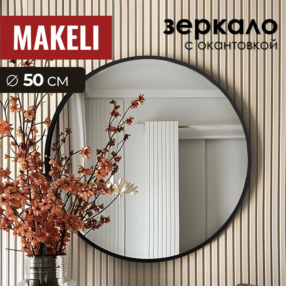 Круглое настенное зеркало Makeli 60 см с чёрной окантовкой