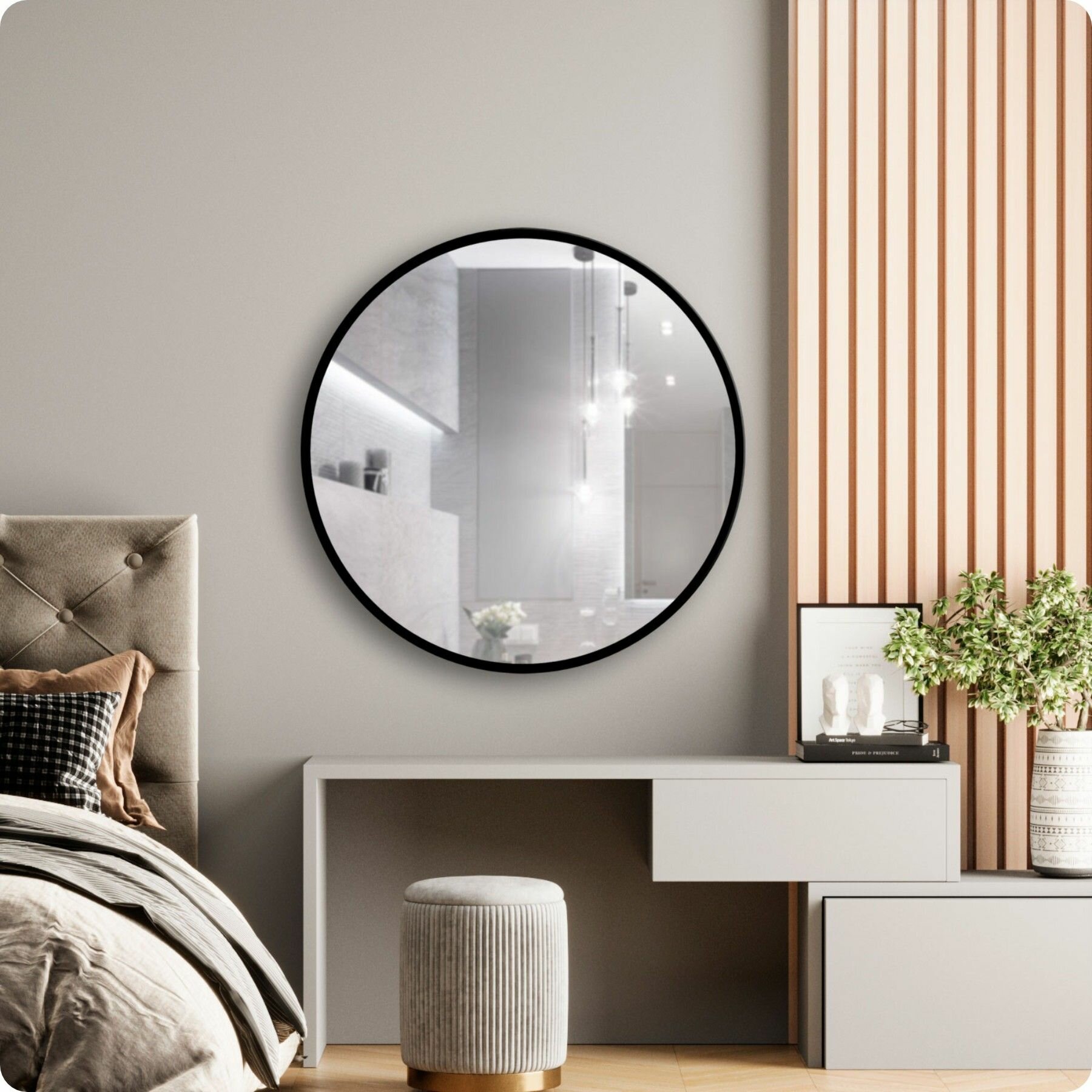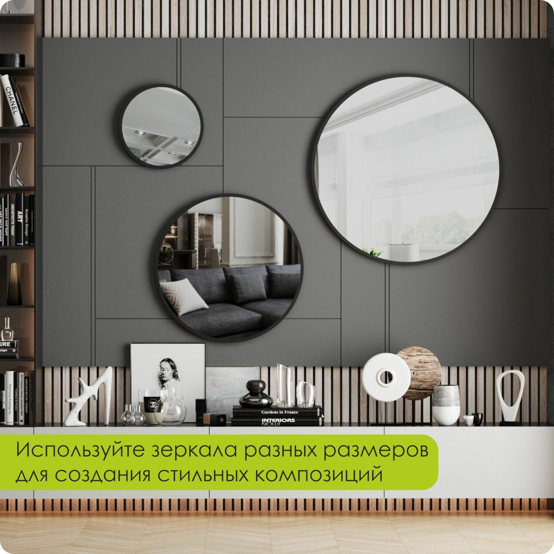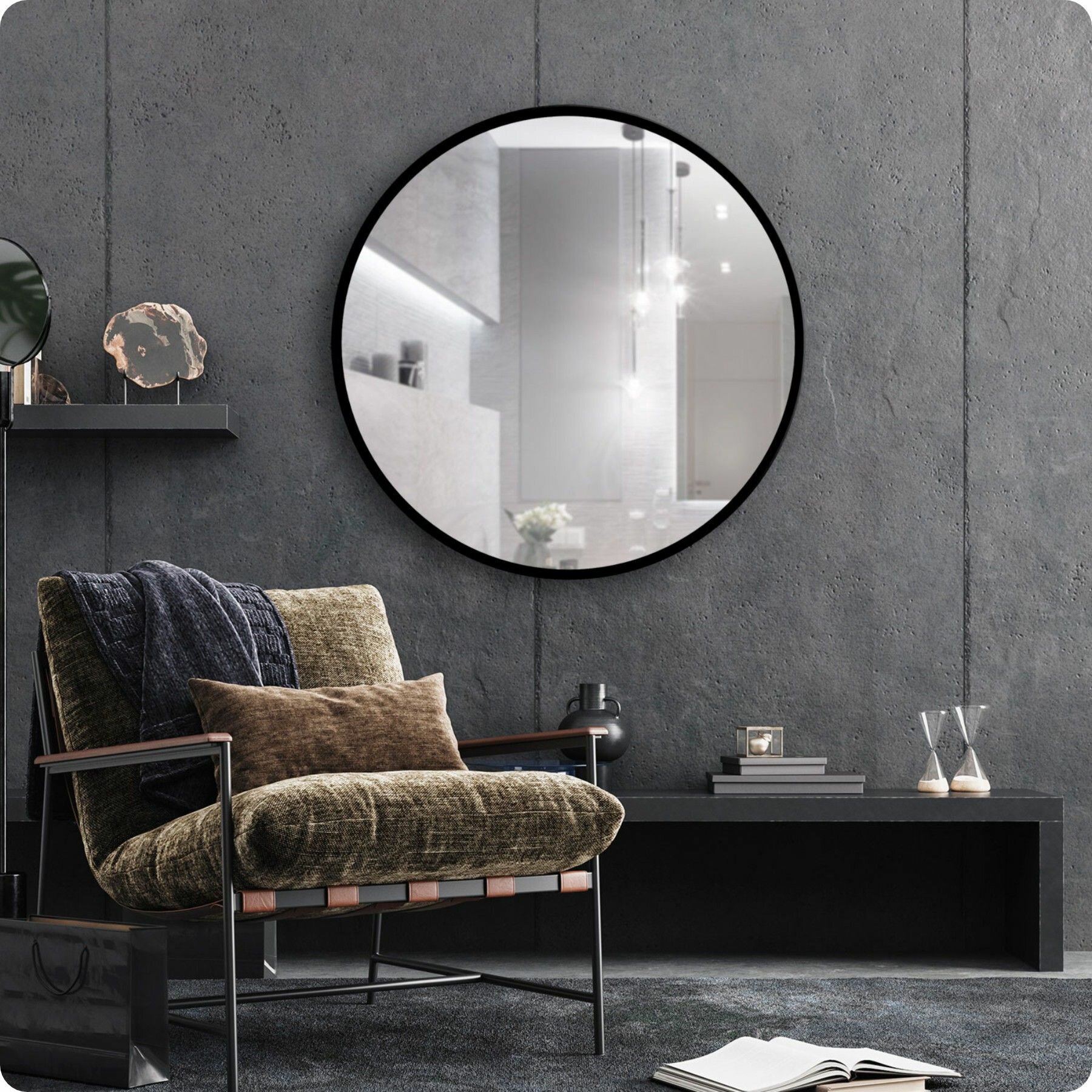 СохранитьЗеркало настенное, зеркало, 80х80 круглое, черное интересное:
