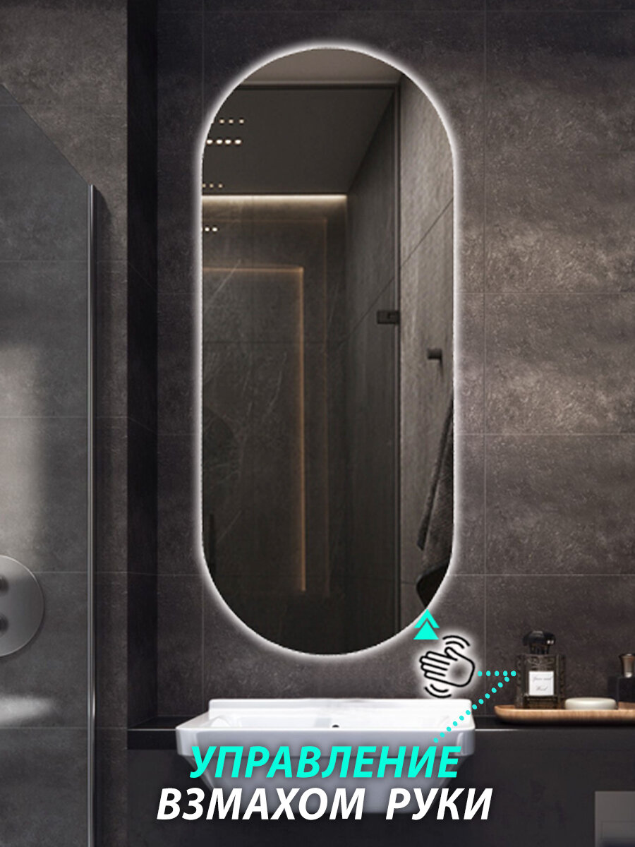 Зеркало настенное с подсветкой капсульное 45*90 см для ванной тёплый свет 3000 К сенсорное управление интересное: