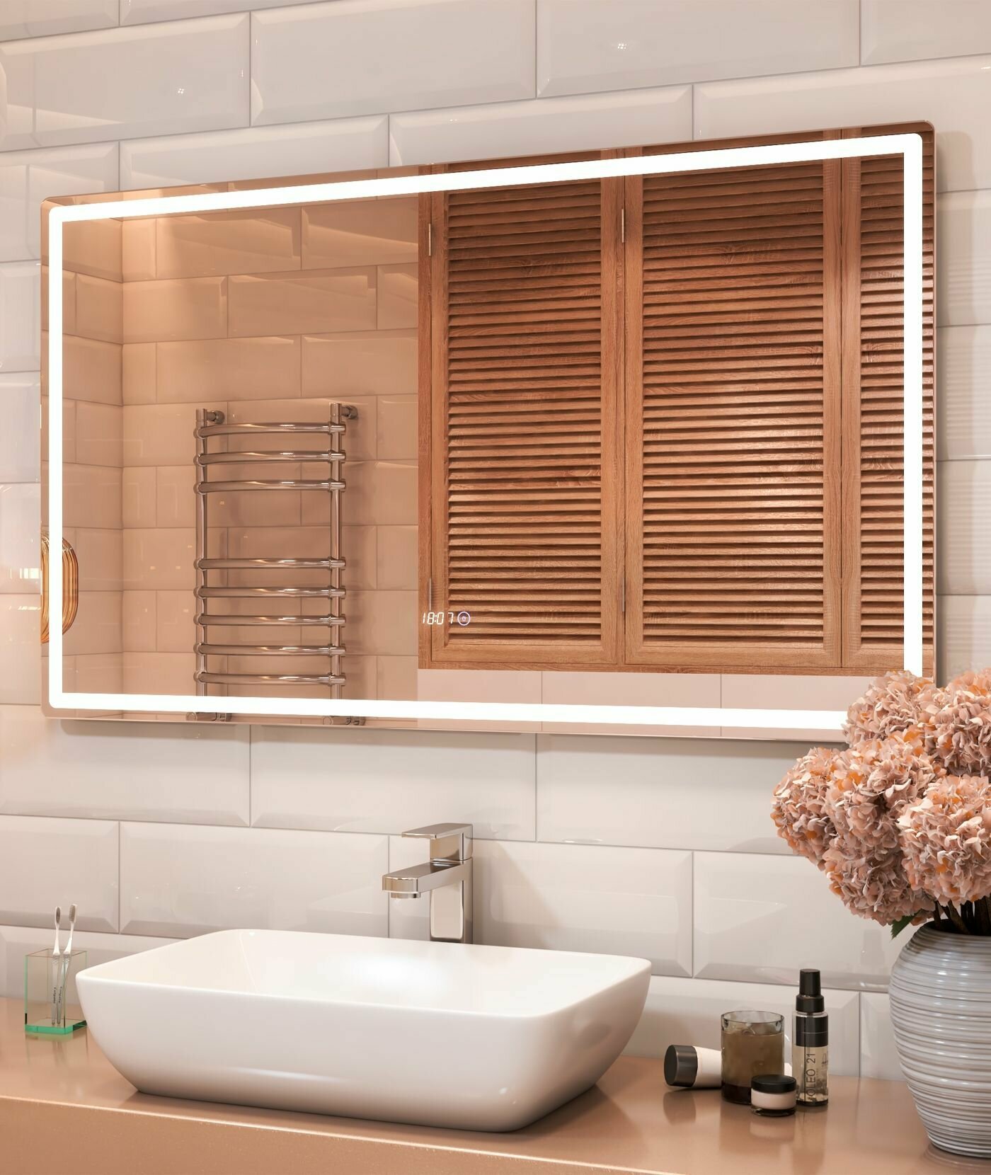 Зеркало настенное для ванной КерамаМане 70*100 см с холодной подсветкой 6000 К с сенсорной кнопкой
