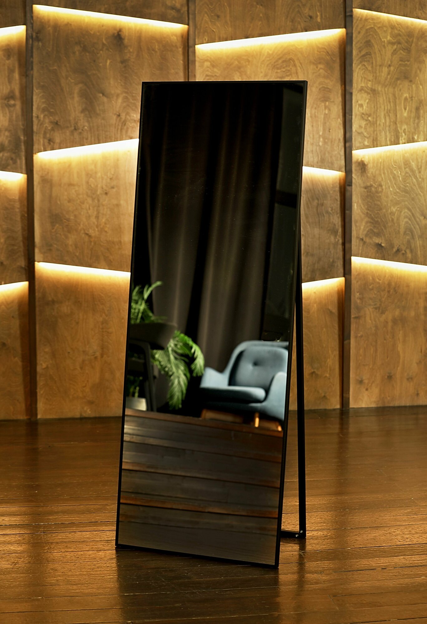 Зеркало в алюминиевой раме напольное ONE MIRROR 160х45 см. Черное