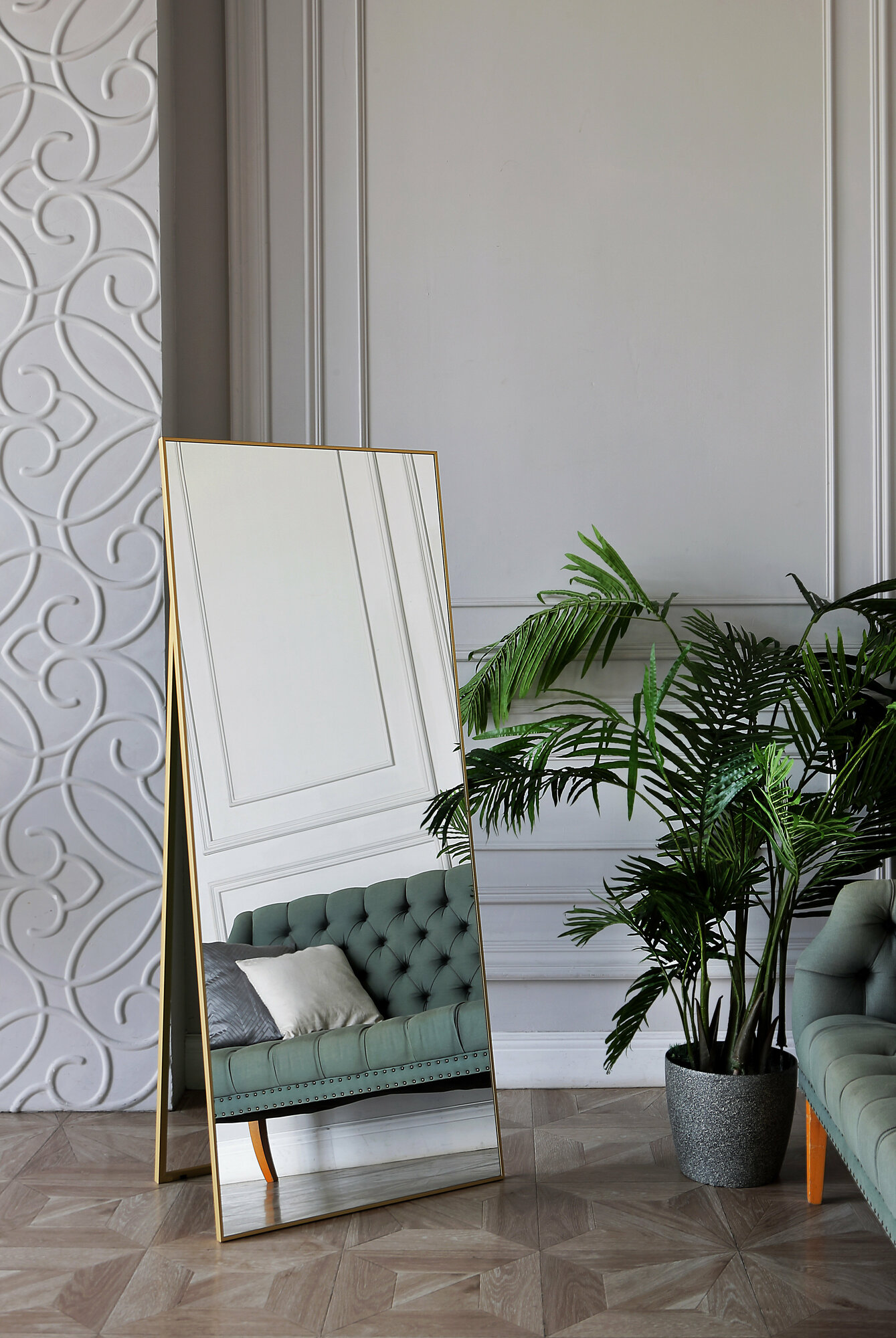 Зеркало в алюминиевой раме напольное ONE MIRROR 170х70 см. Золото