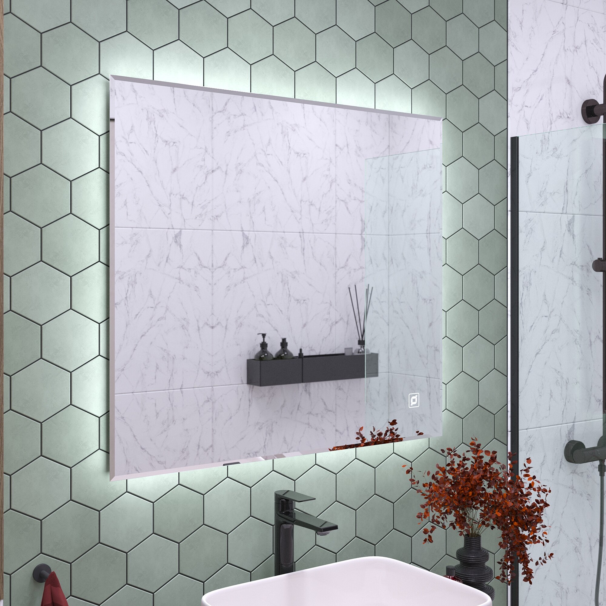 Зеркало для ванной с подсветкой орвието 70 х 80 см сенсор с диммером