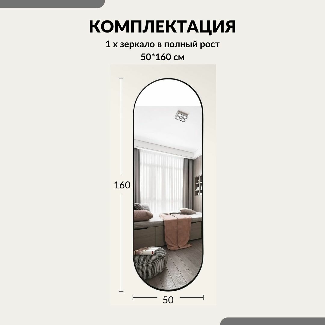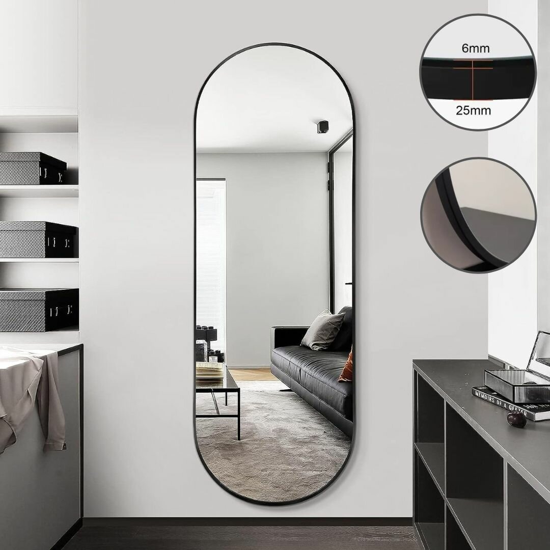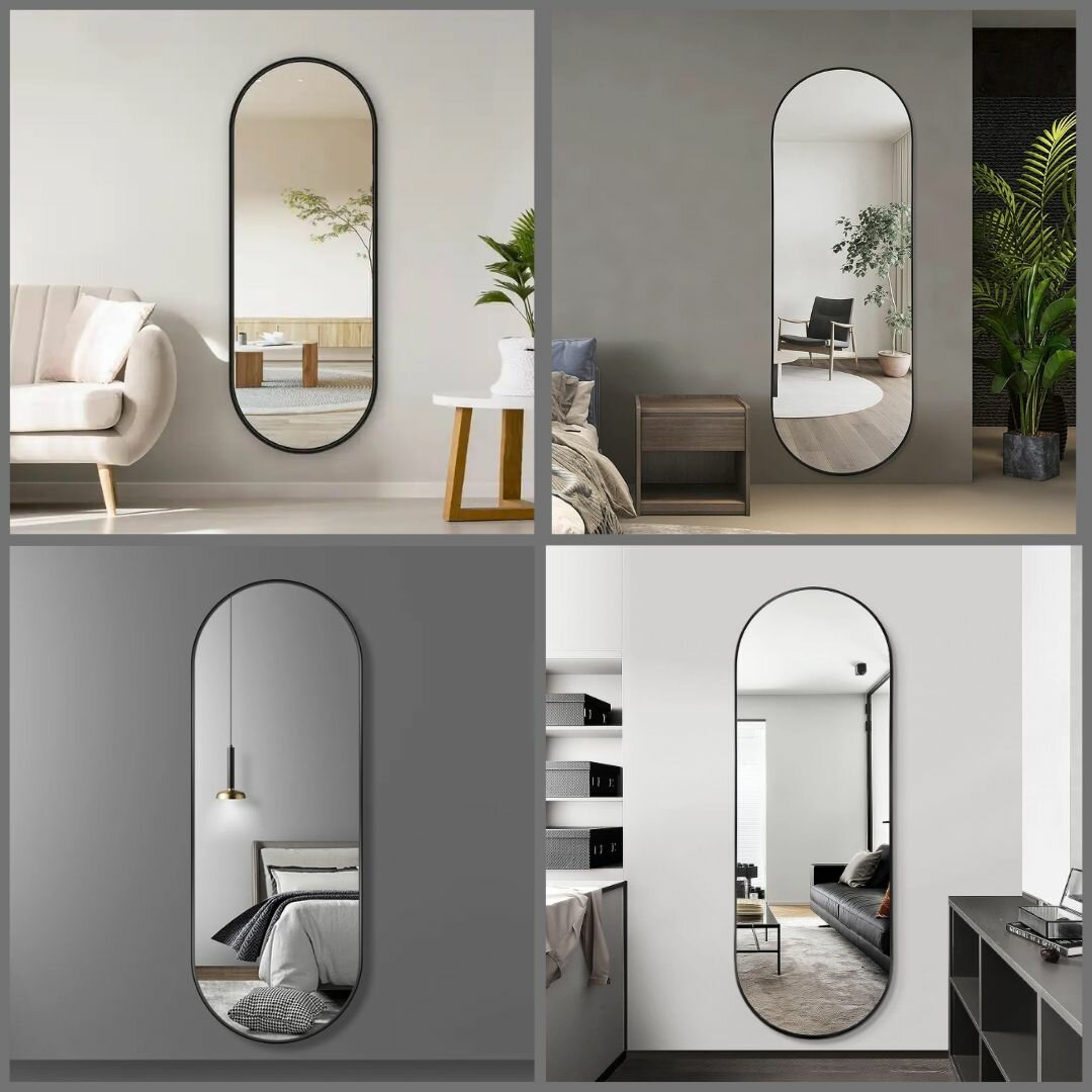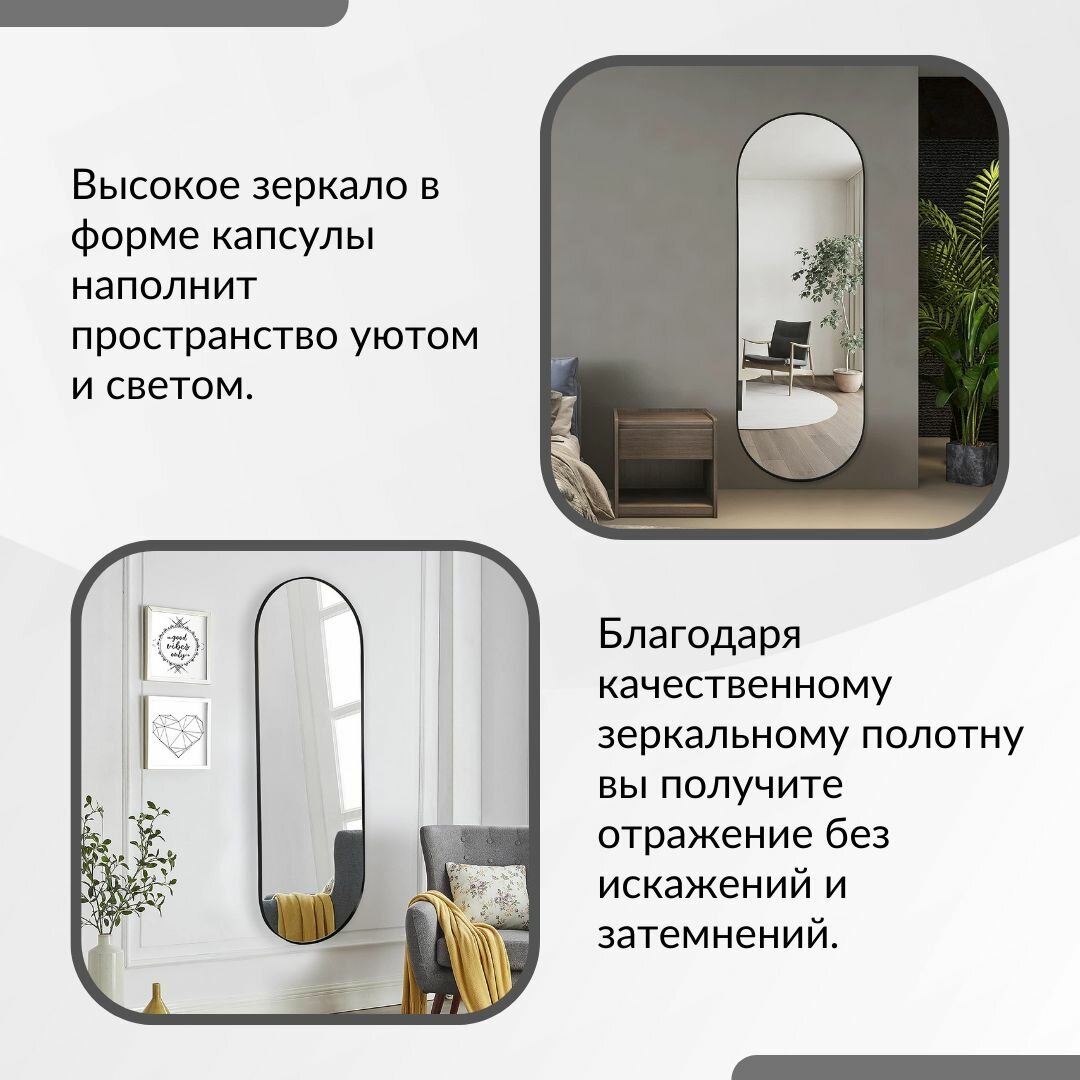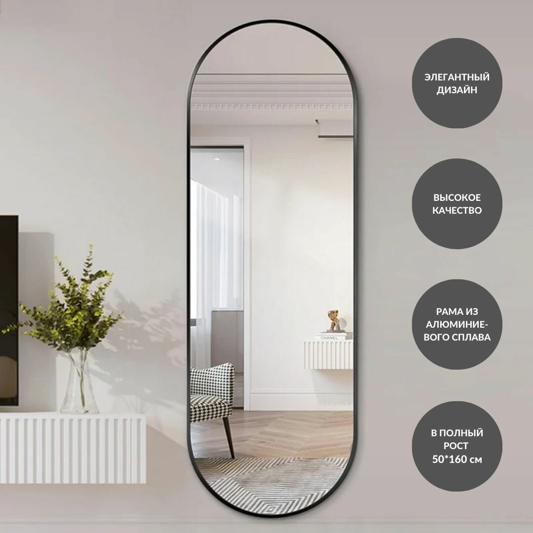 Зеркало настенное интерьерное в полный рост в черной металлической раме 50*160 см интересное: