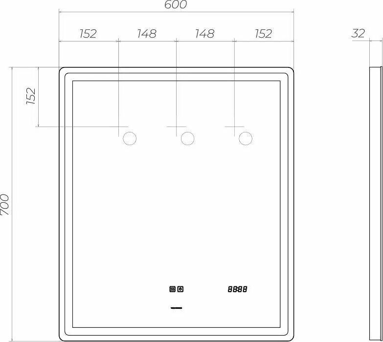 Зеркало VIGO Geometry Luxe 60 подсветка, сенс. упр-е, часы, антизапотевание (z. GEO.60. Luxe)