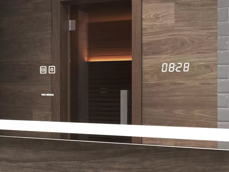 Зеркало с LED-подсветкой, часами и антизапотеванием VIGO GEOMETRY LUXE 800
