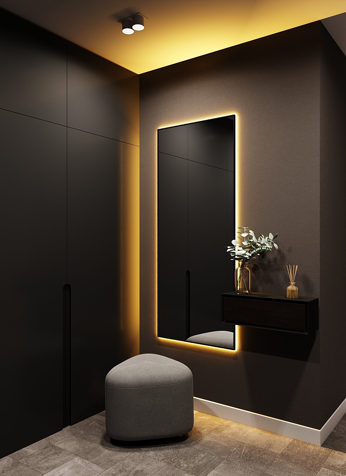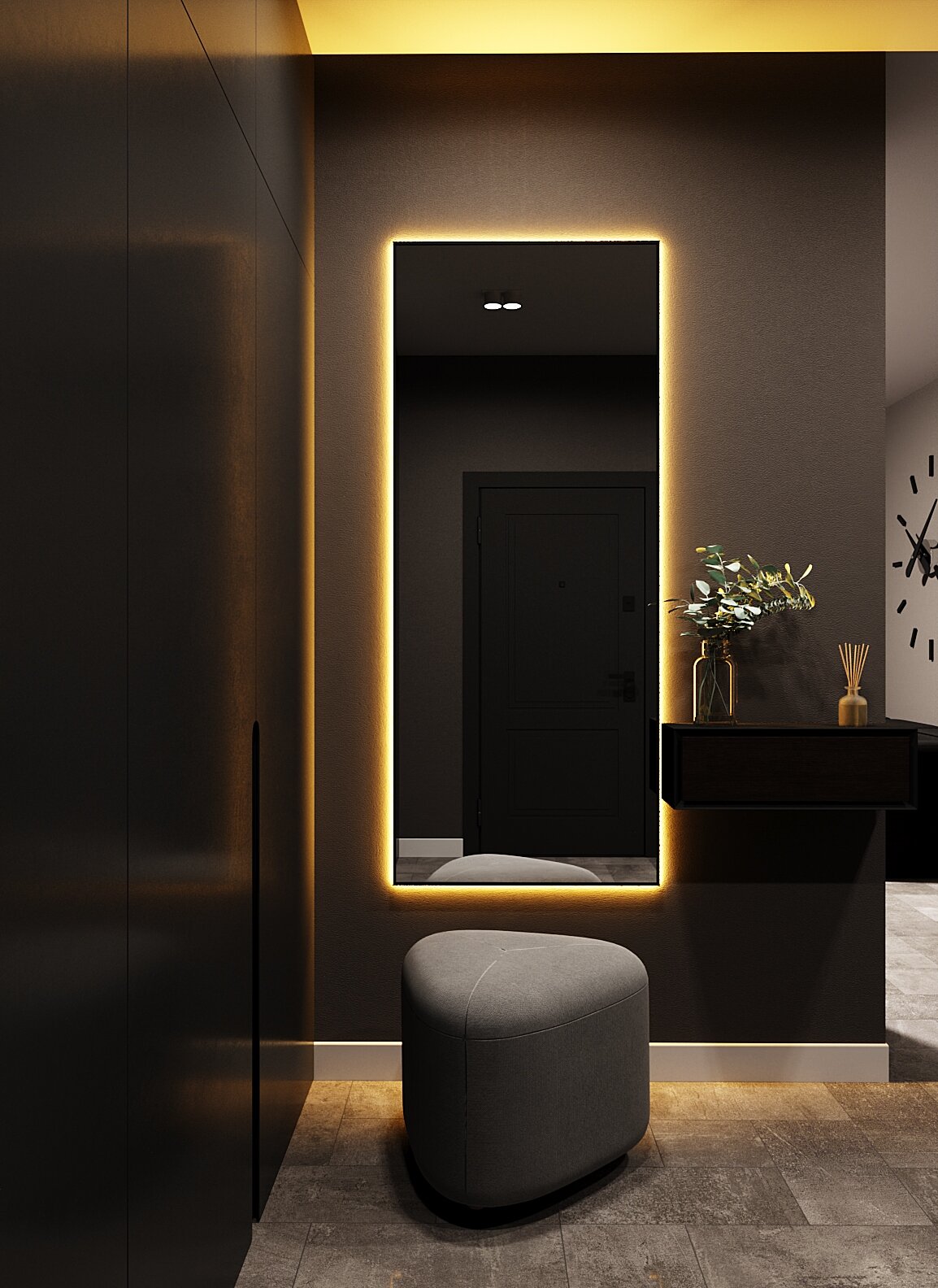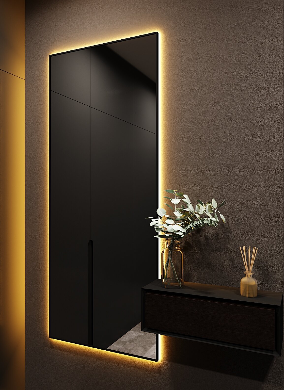 Купить Зеркало с подсветкой в алюминиевой раме, настенное, ONE MIRROR, 170х70 см. Черное. Свет: Теплый белый 3000К