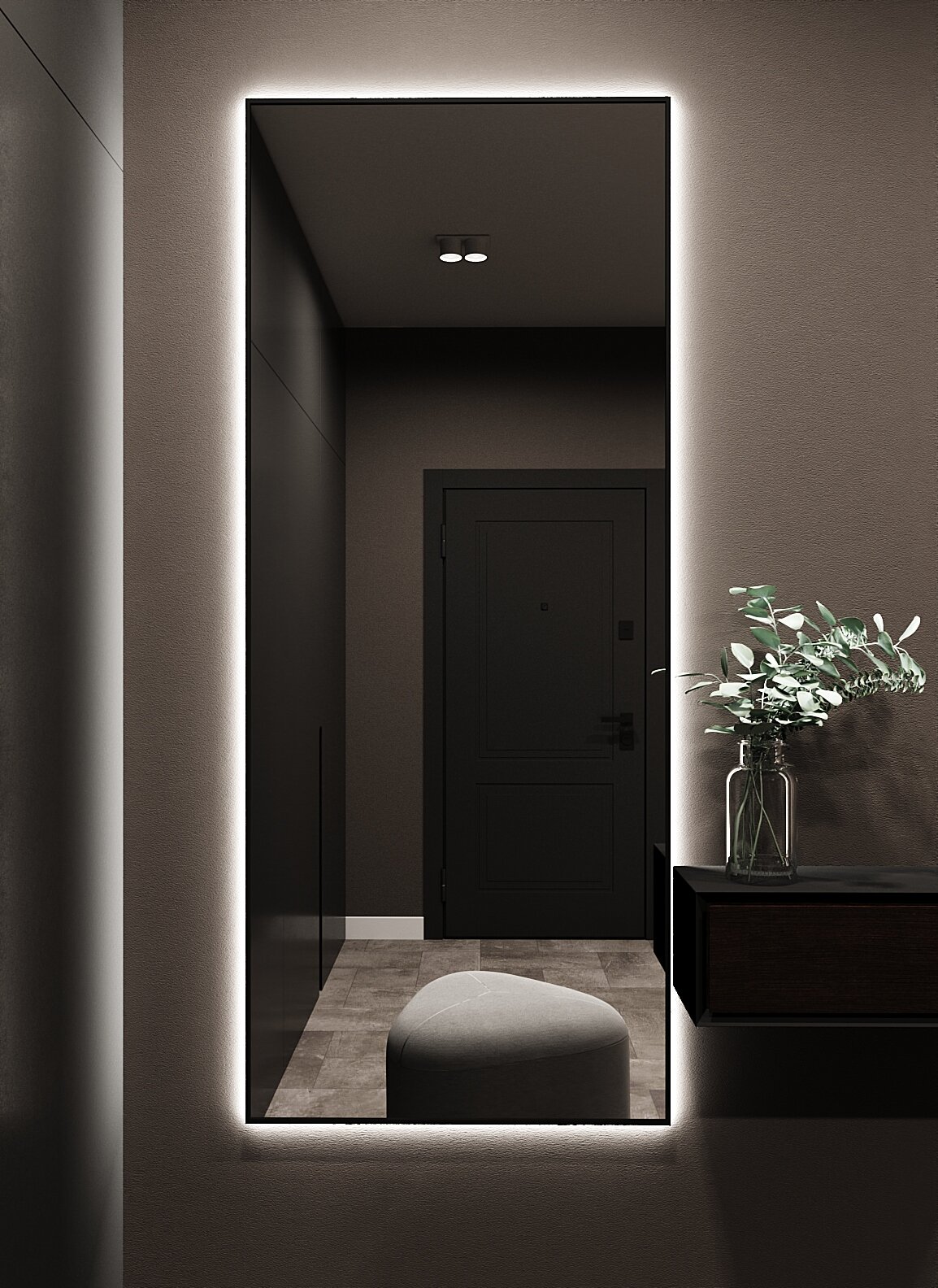 СохранитьЗеркало с подсветкой в алюминиевой раме, настенное, ONE MIRROR, 170х70 см. Черное. Свет: Нейтральный белый 6000К интересное: