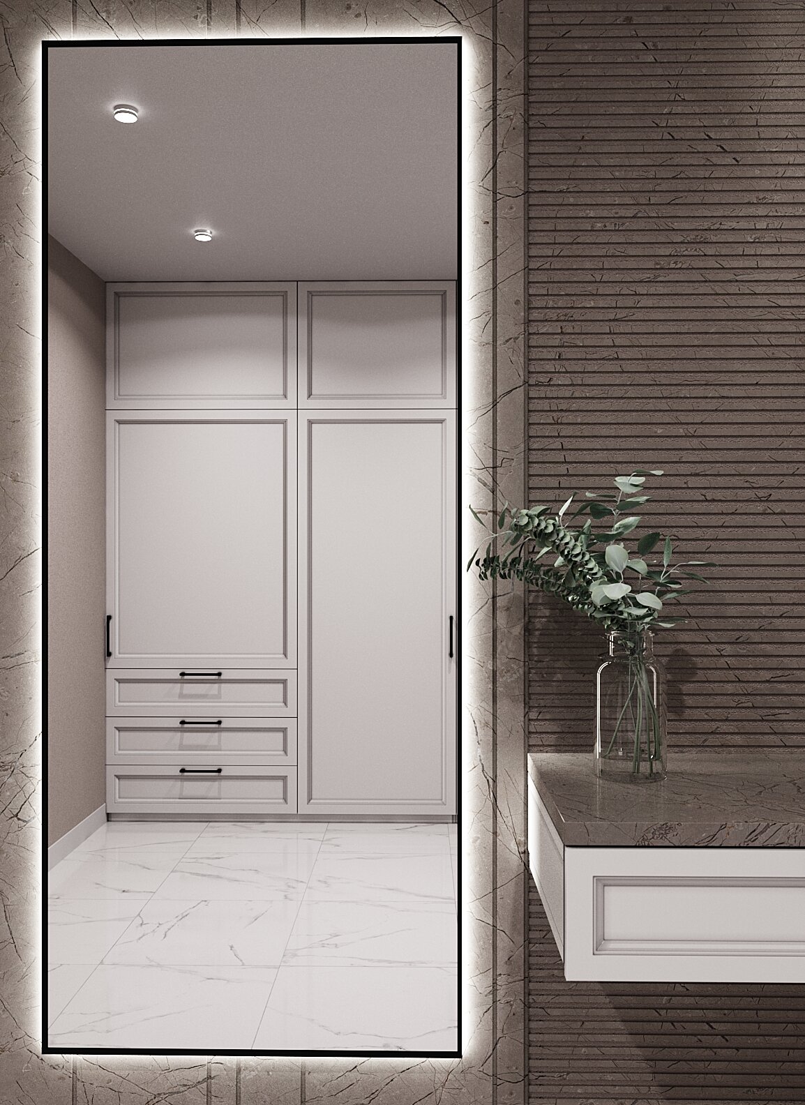 Зеркало с подсветкой в алюминиевой раме, настенное, ONE MIRROR, 170х70 см. Белое. Свет: Теплый белый 3000К