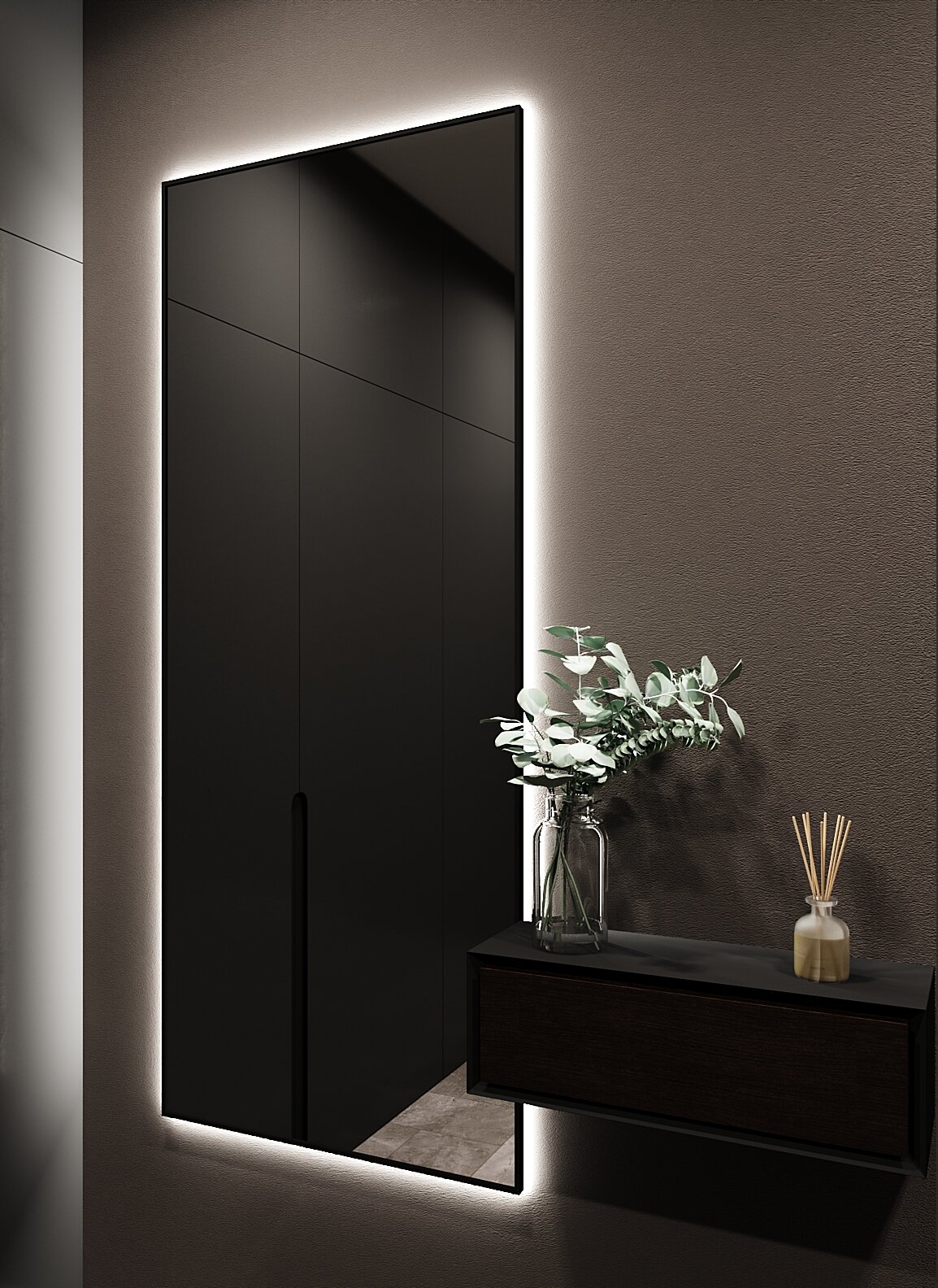 Зеркало с подсветкой в алюминиевой раме, настенное, ONE MIRROR, 170х70 см. Черное. Свет: Теплый белый 3000К