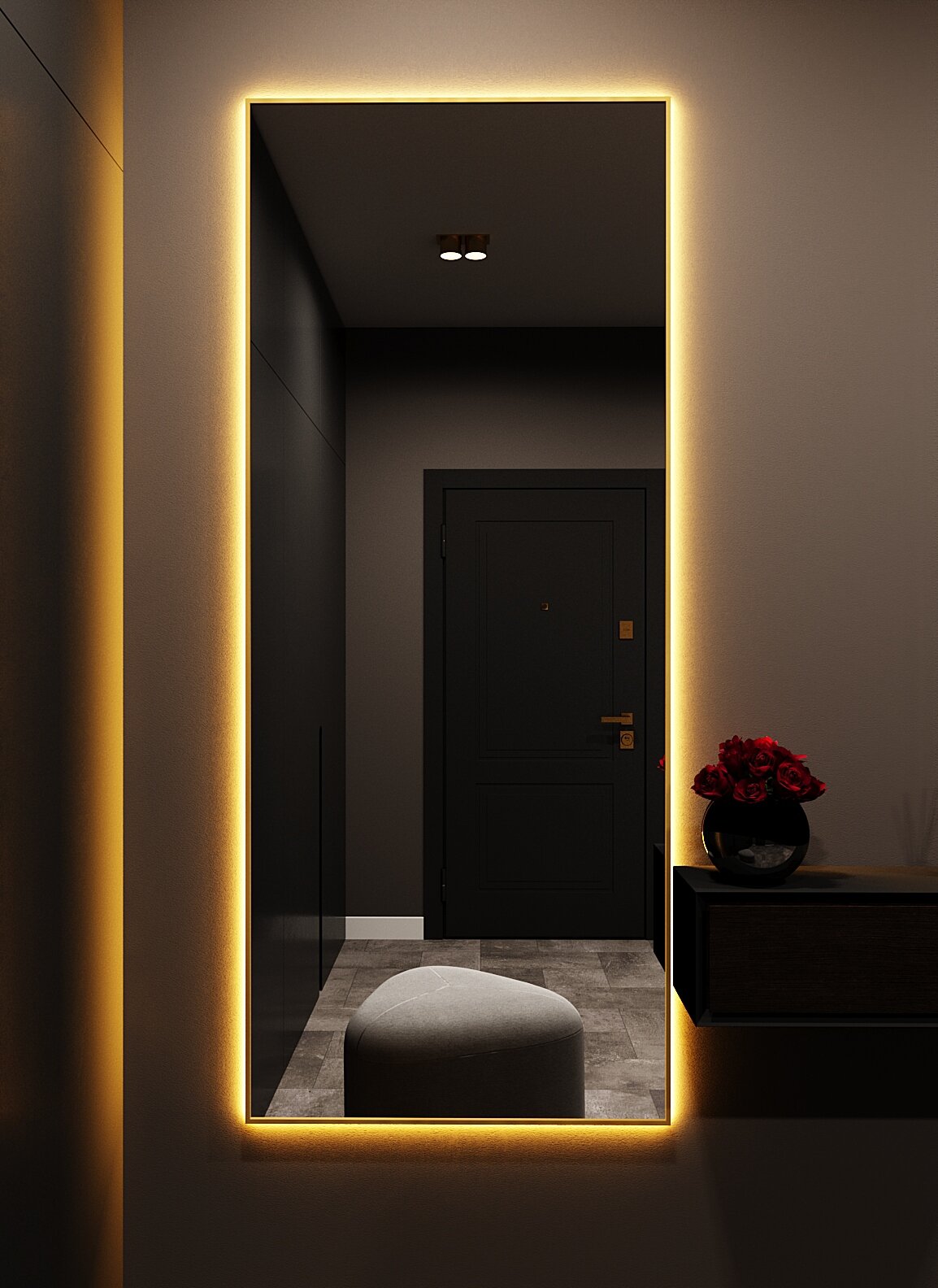 Зеркало с подсветкой в алюминиевой раме, настенное, ONE MIRROR, 170х70 см. Черное. Свет: Нейтральный белый 6000К