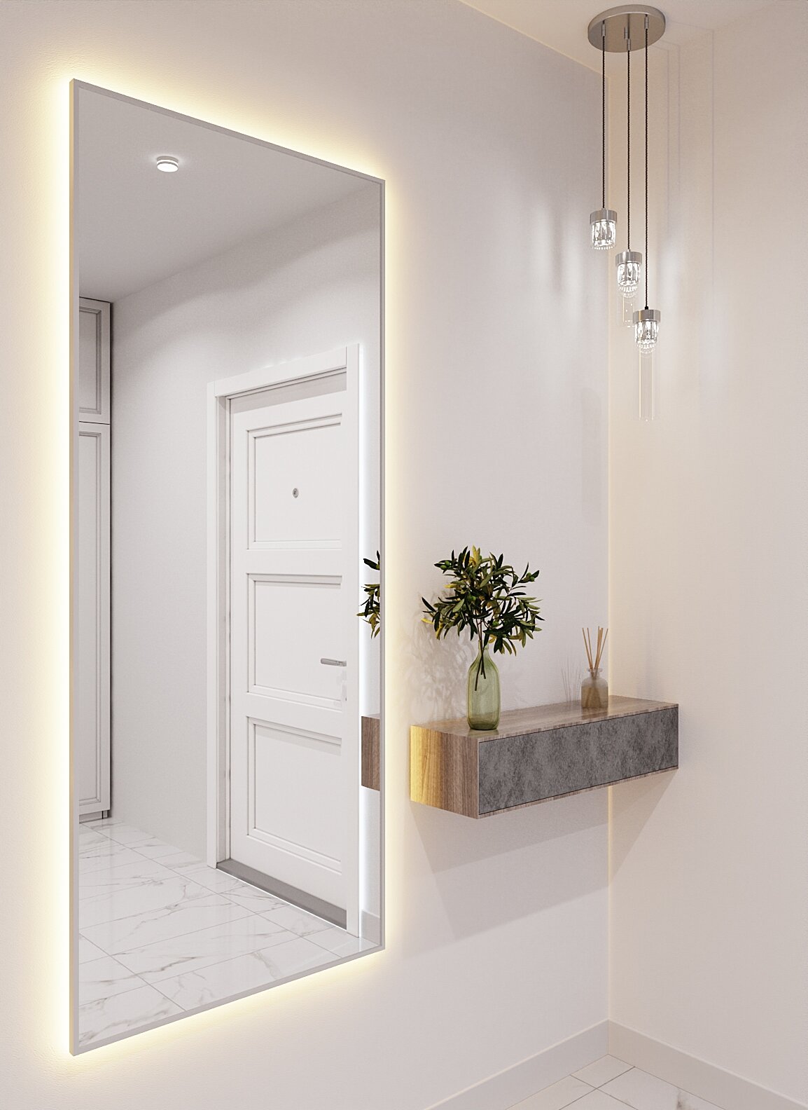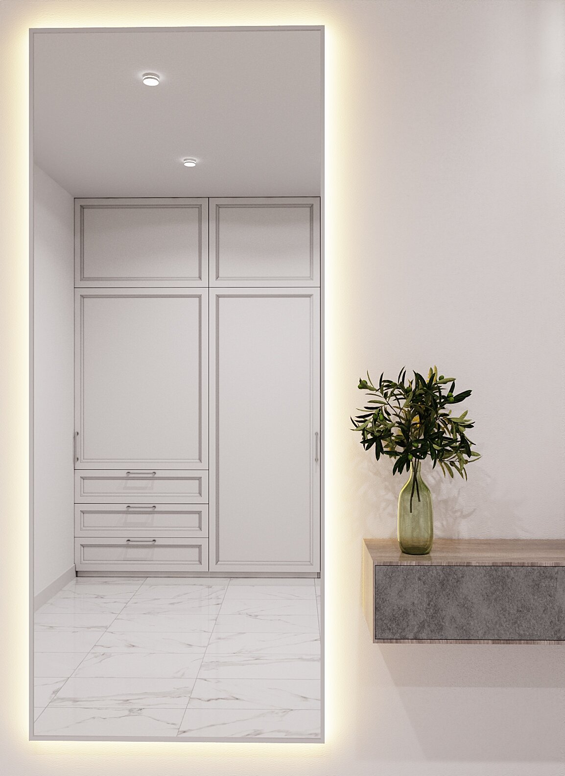 Зеркало с подсветкой в алюминиевой раме, настенное, ONE MIRROR, 170х70 см. Белое. Свет: Теплый белый 3000К