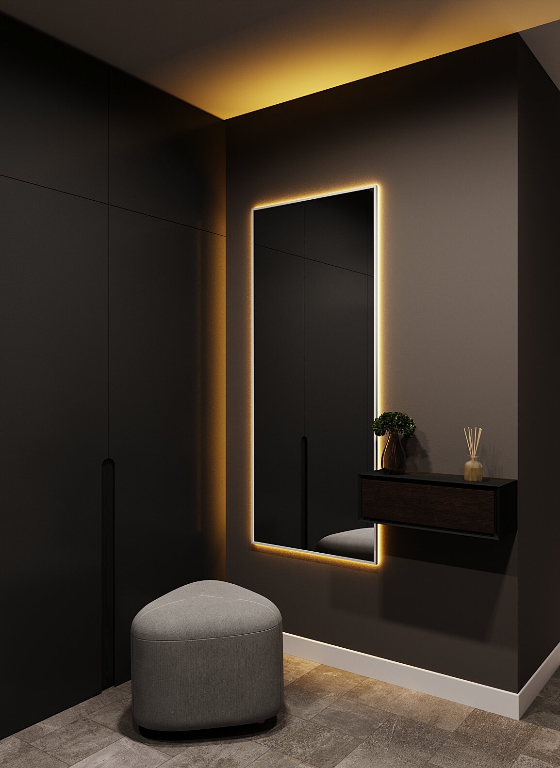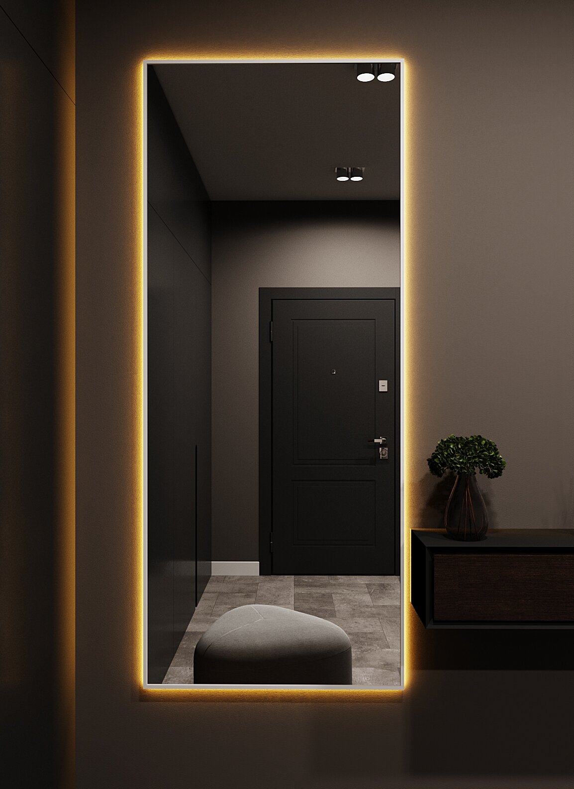 Зеркало с подсветкой в алюминиевой раме, настенное, ONE MIRROR, 170х70 см. Черное. Свет: Теплый белый 3000К