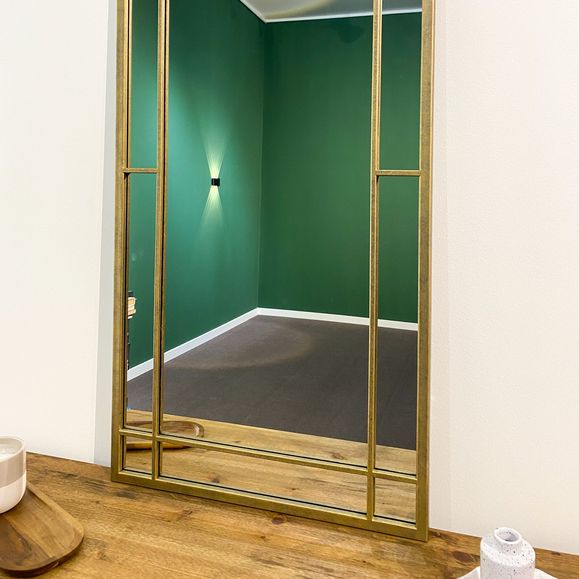 Зеркало большое в спальню в полный рост в золотой металлической раме интерьерное декоративное в пол