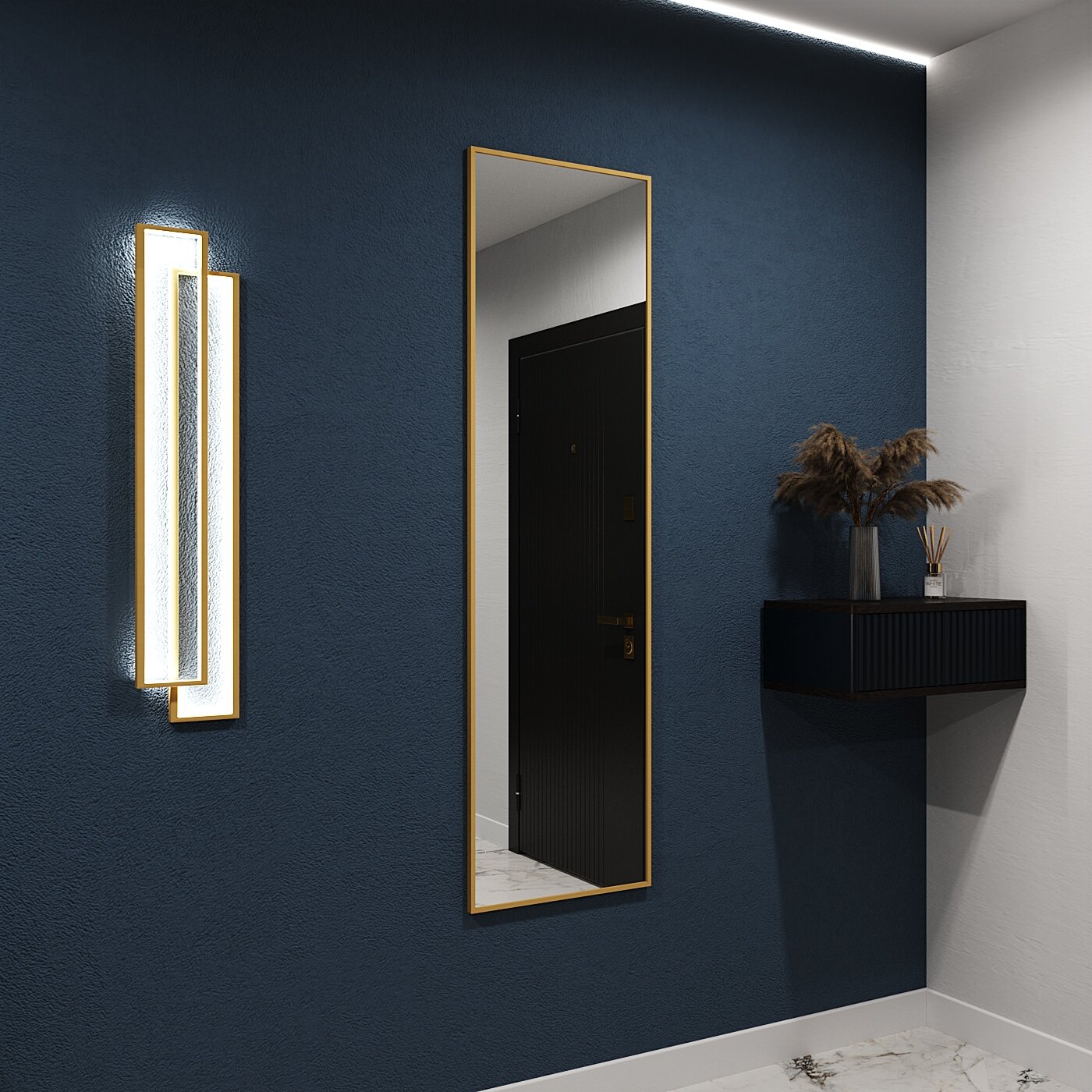 Зеркало настенное в алюминиевой раме ONE MARKET , 200х60 см. Черное