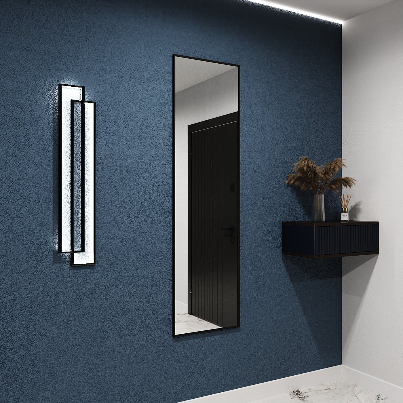 Зеркало настенное в алюминиевой раме ONE MARKET , 200х60 см. Черное