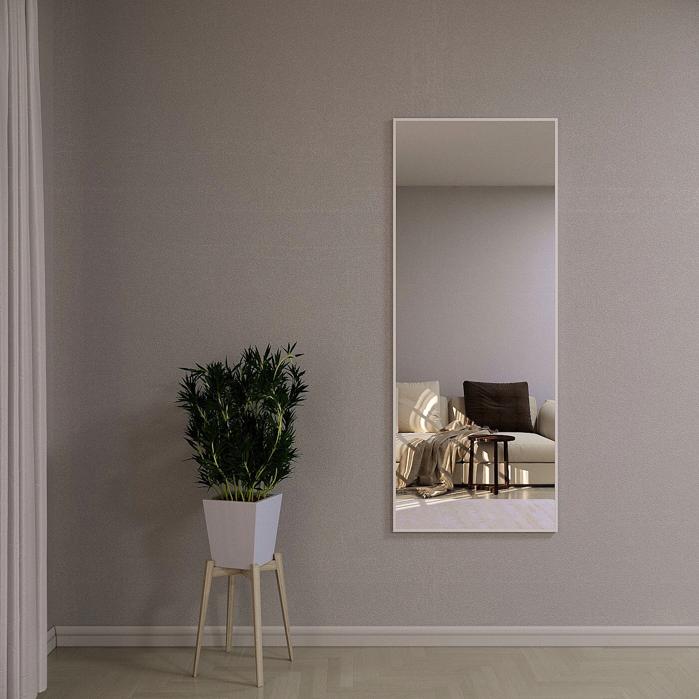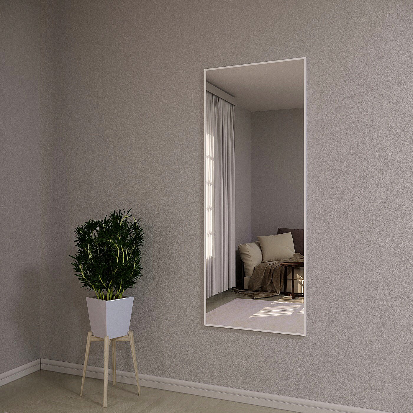 Зеркало настенное в алюминиевой раме ONE MARKET , 170х60 см. Белое