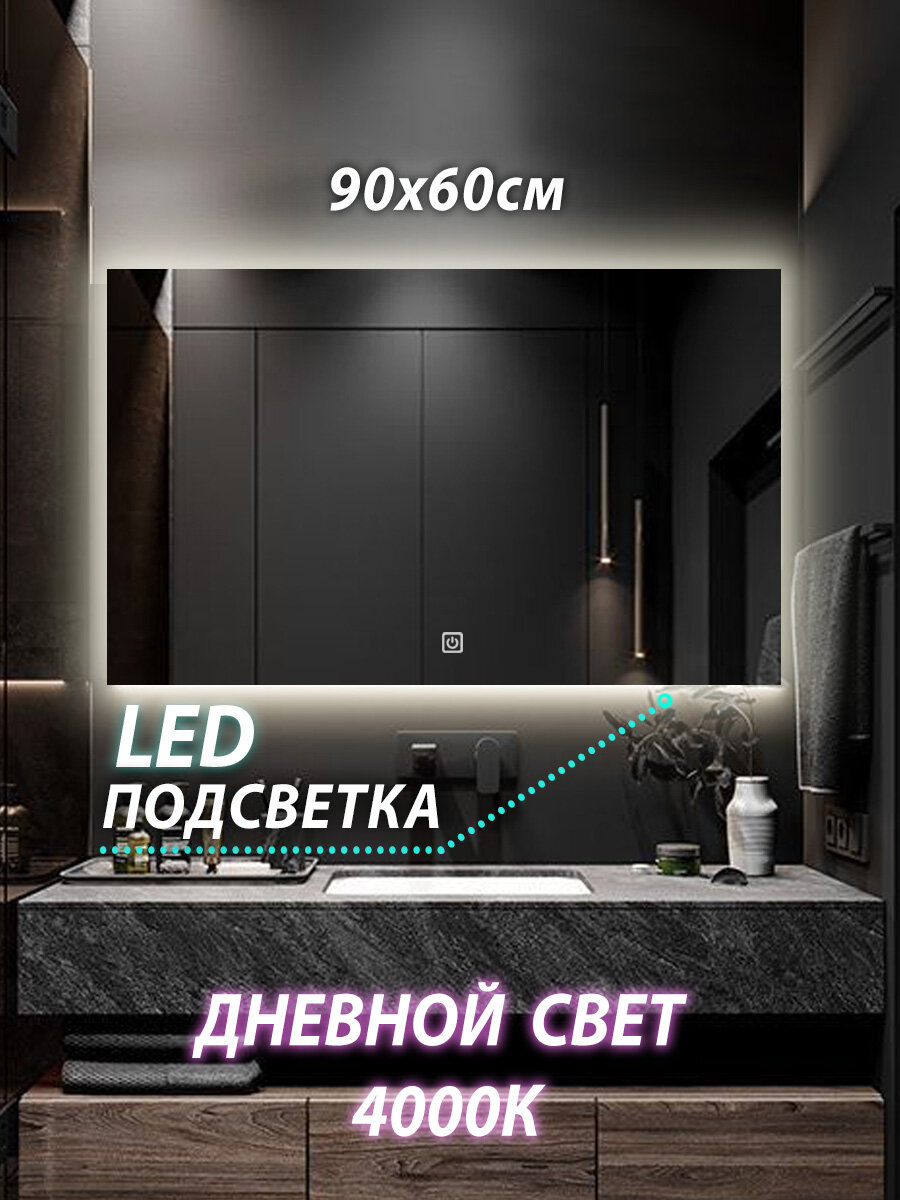 Зеркало настенное для ванной КерамаМане 90*60 см с нейтральной подсветкой 4000 К с сенсорной кнопкой интересное: