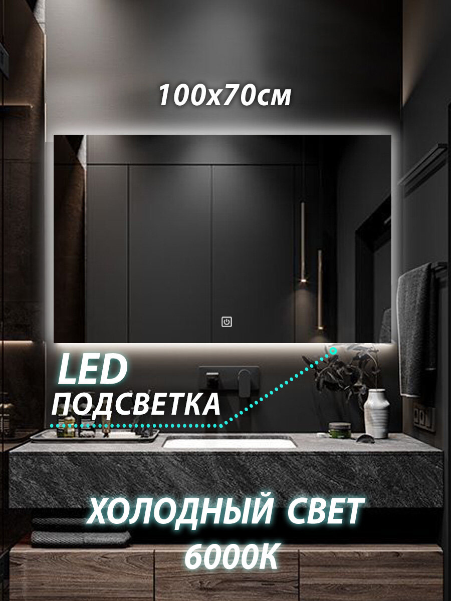 Зеркало настенное для ванной КерамаМане 100*70 см с холодной подсветкой 6000 с сенсорной кнопкой интересное: