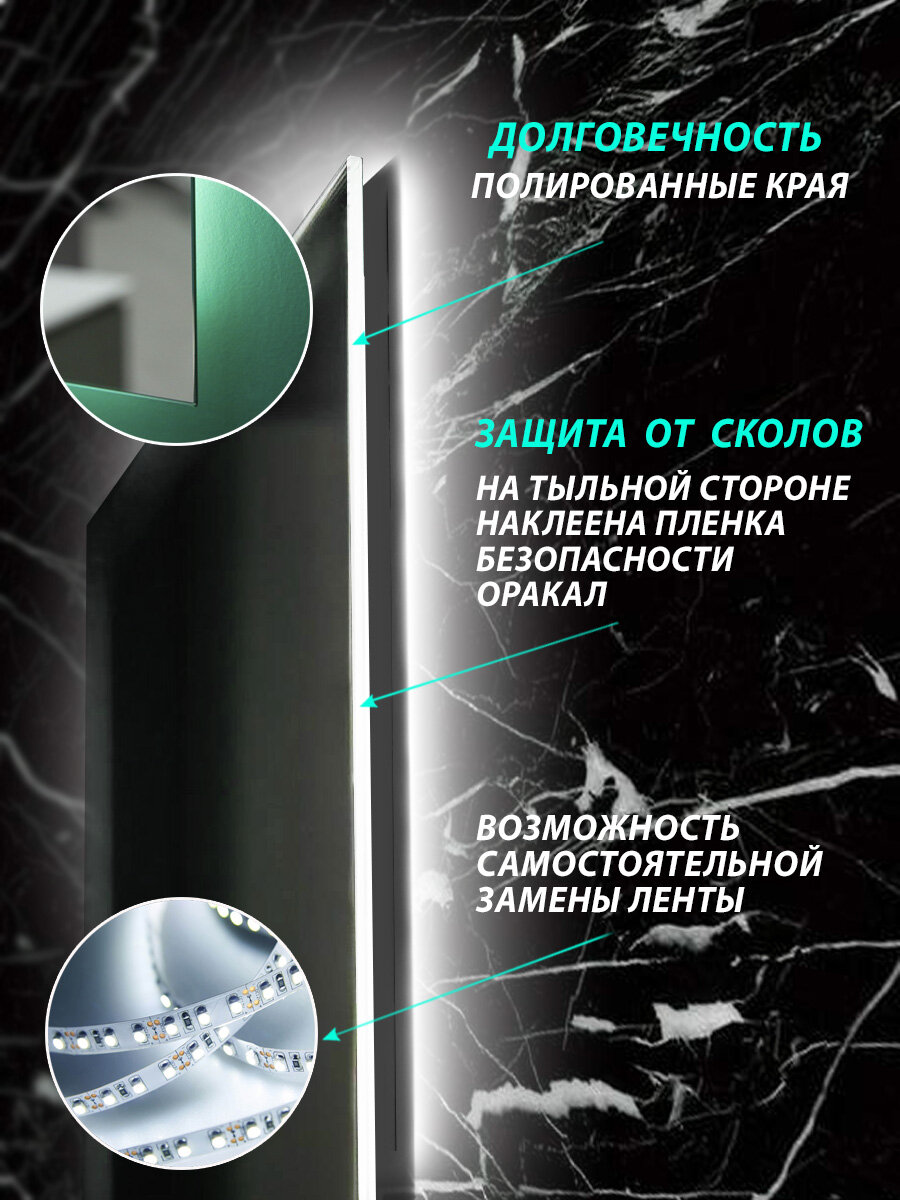 Зеркало настенное для ванной КерамаМане 50*80 см с холодной подсветкой 6000 К с сенсорной кнопкой