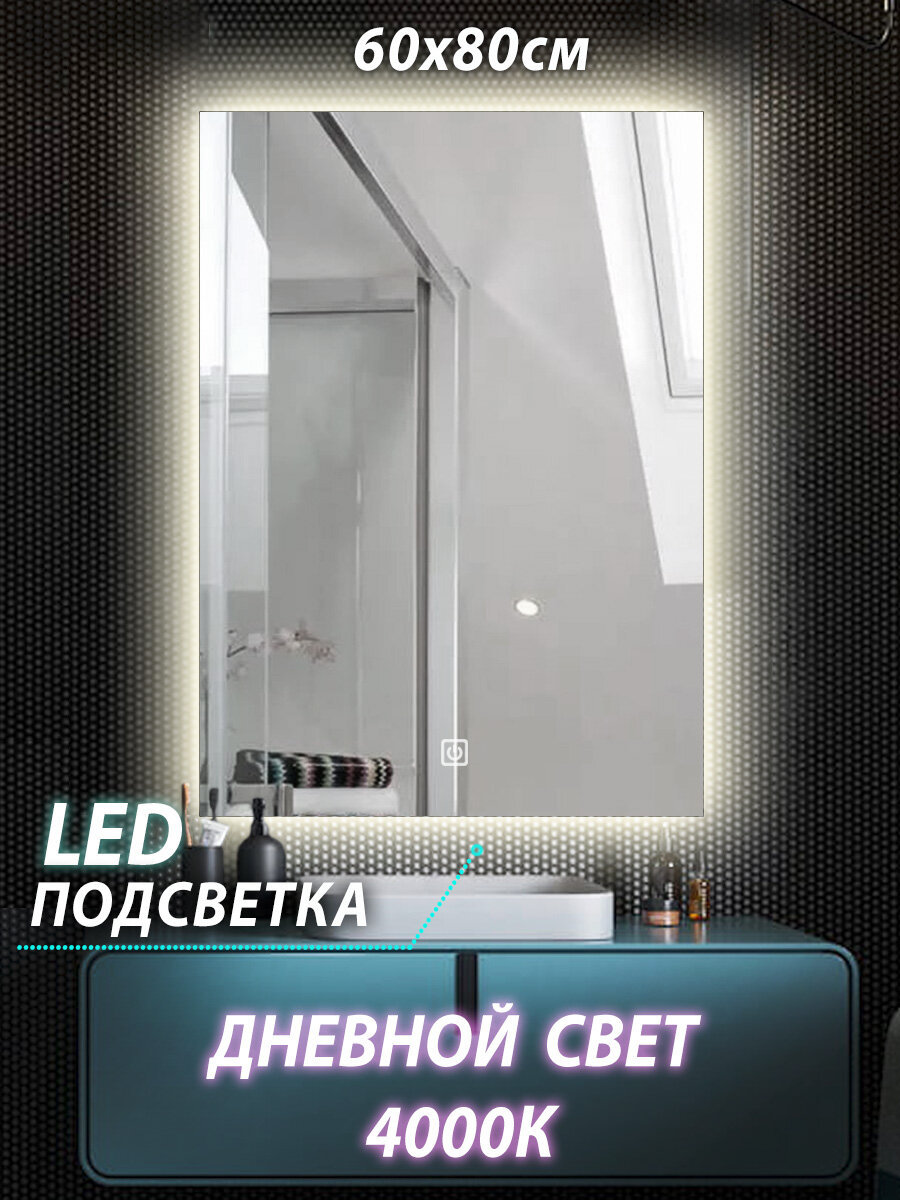 Зеркало настенное для ванной КерамаМане 60*80 см с нейтральной подсветкой 4000 К с сенсорной кнопкой интересное: