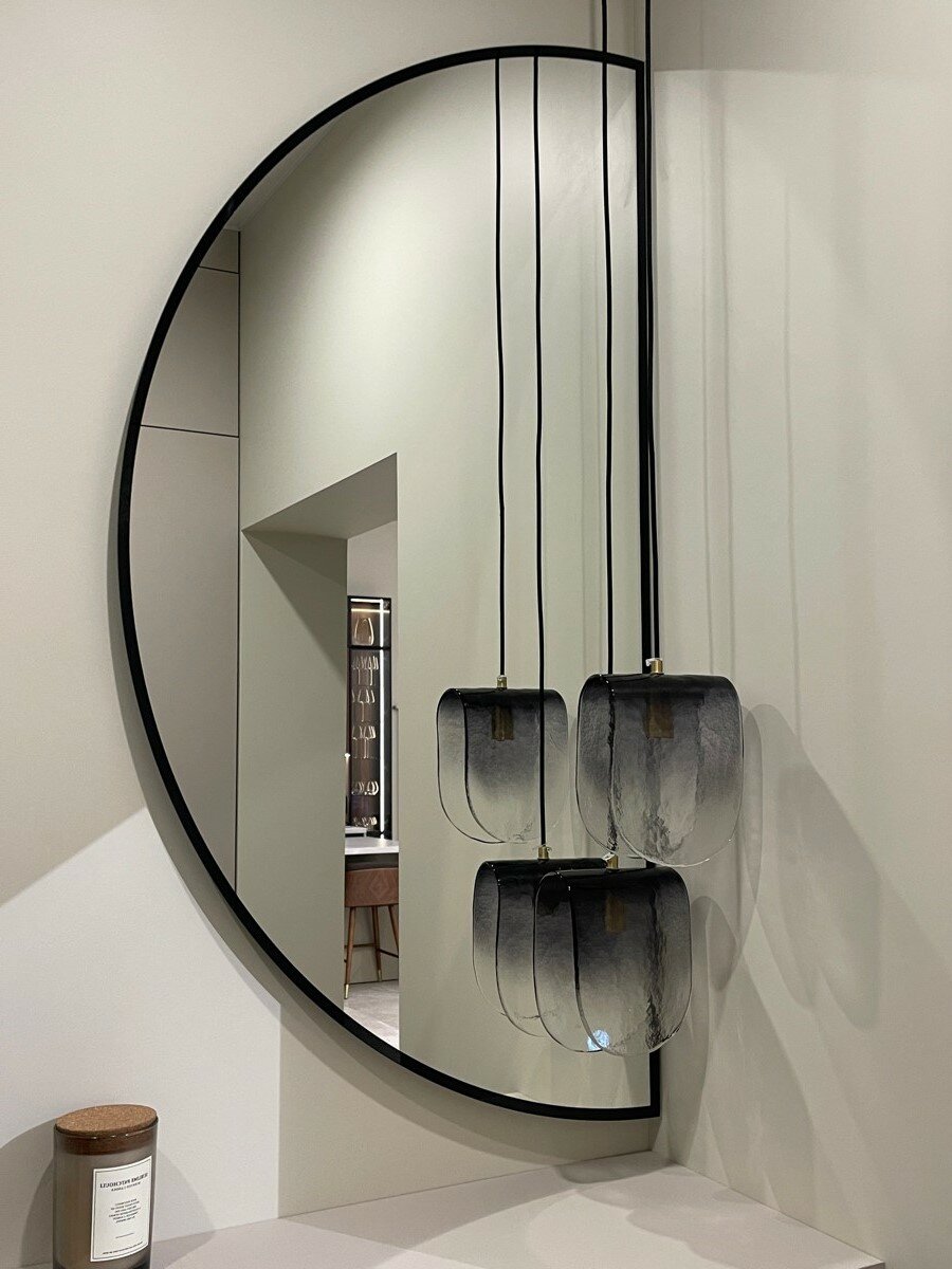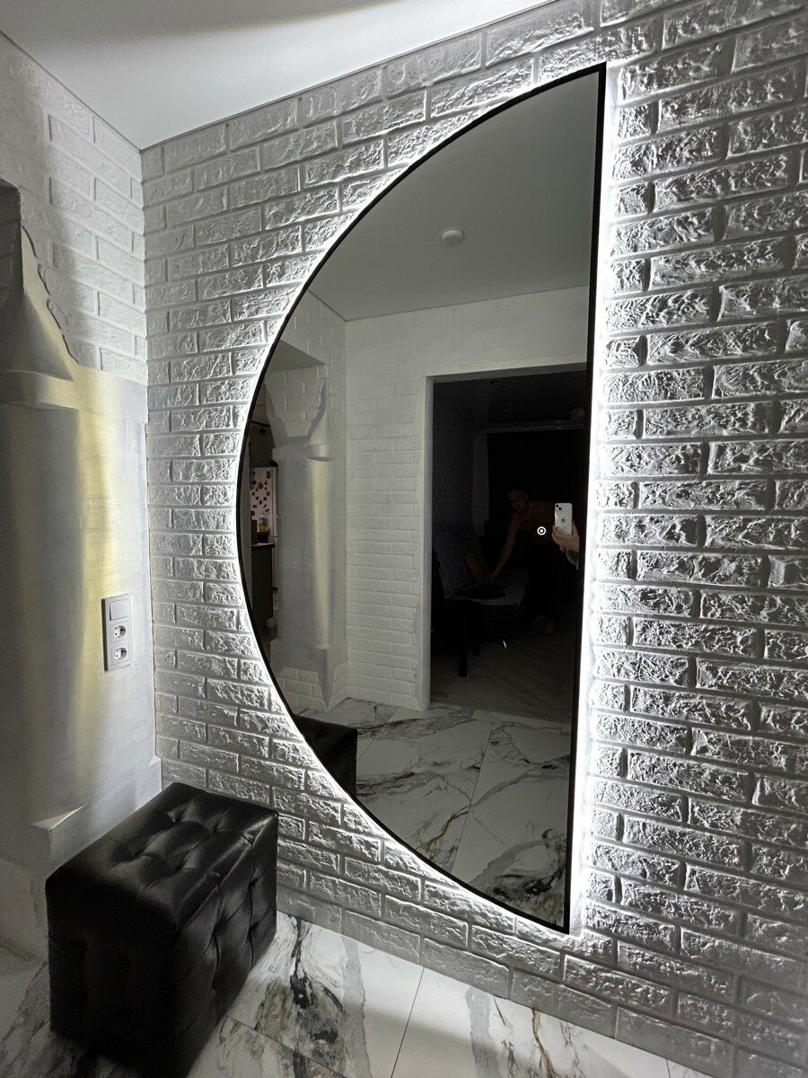 СохранитьЗеркало интерьерное настенное с подсветкой парящее полукруглое левое 75*150см для ванной сенсорное управление + покраска по периметру интересное: