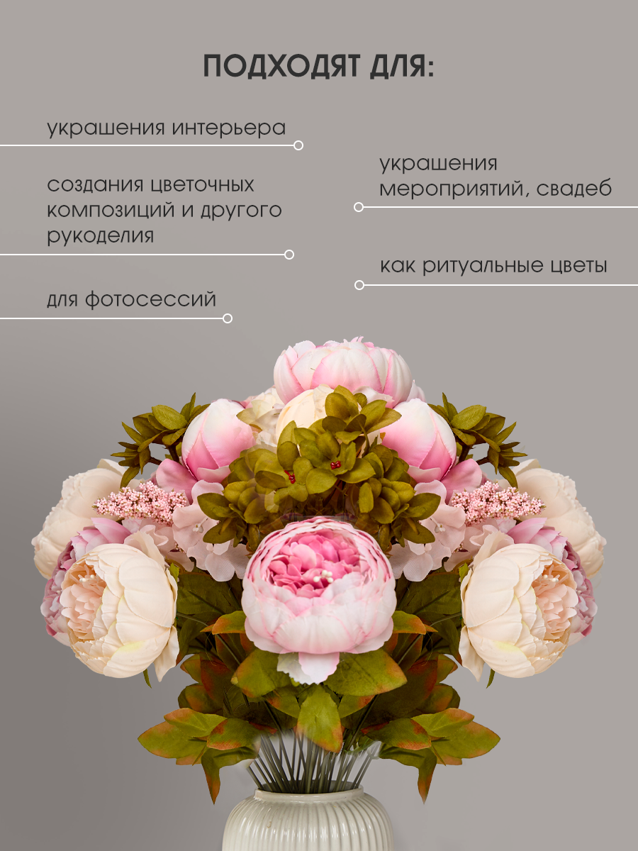 | Подробная комплектация | букет искусственных пионов - 1 шт |