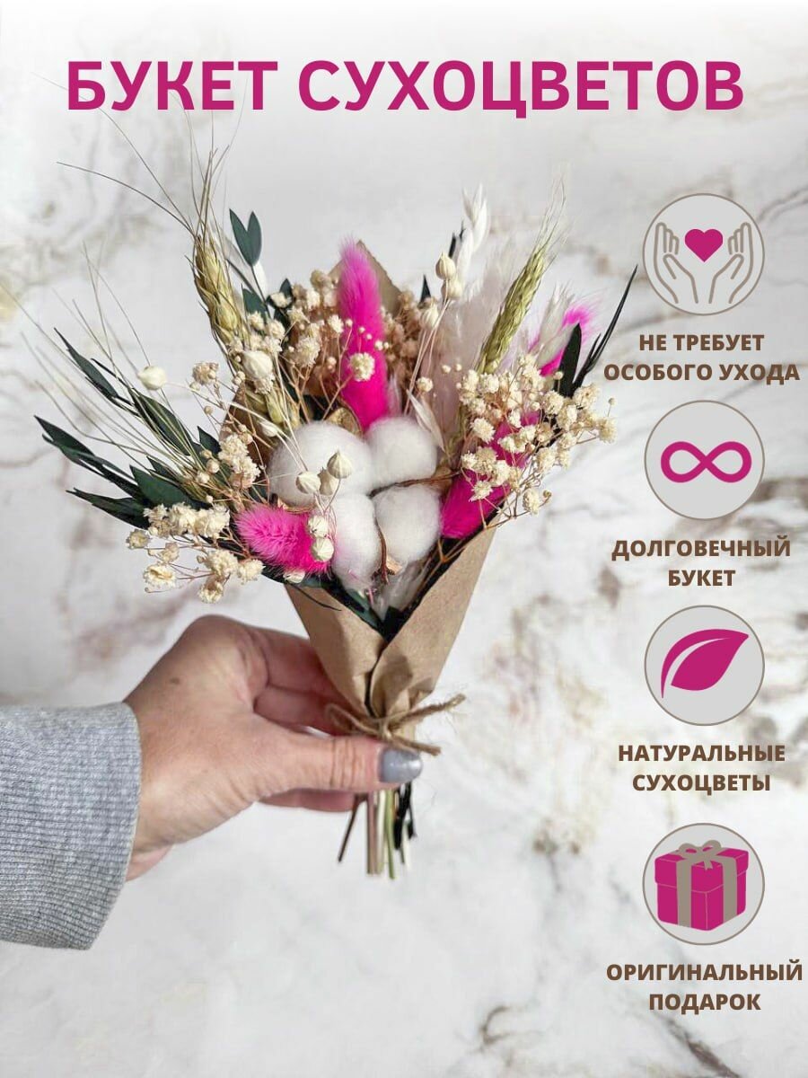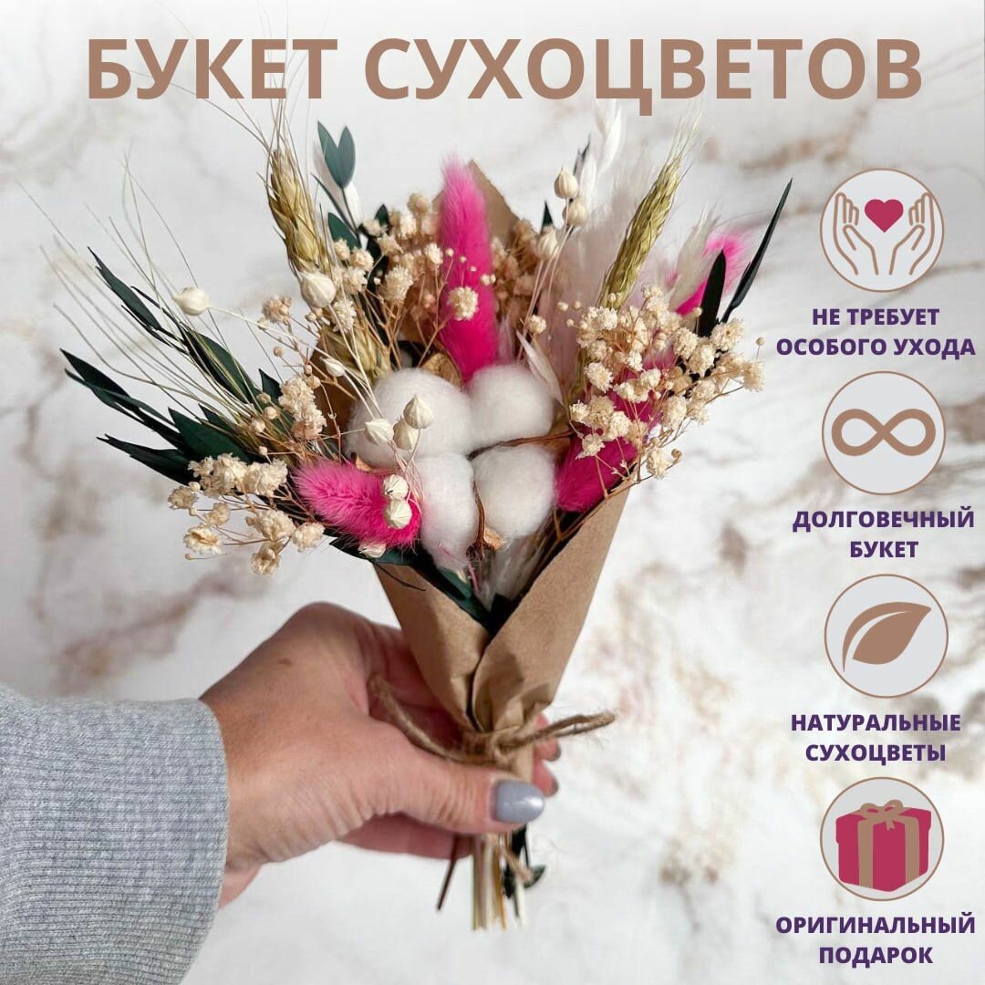 Сухоцветы, стабилизированные цветы, декоративные цветы, искусственные цветы, букет из сухоцветов, лагурус