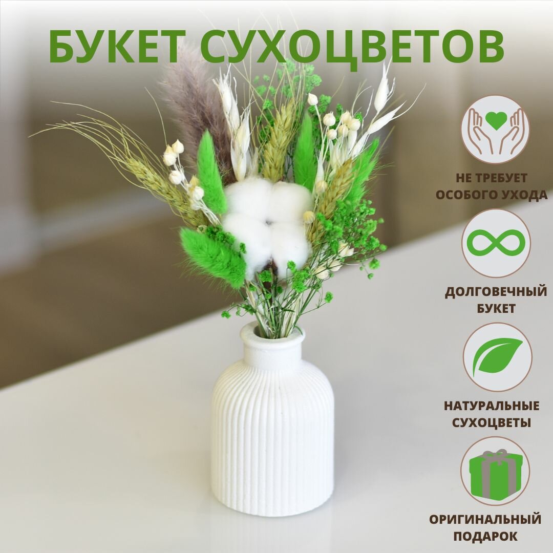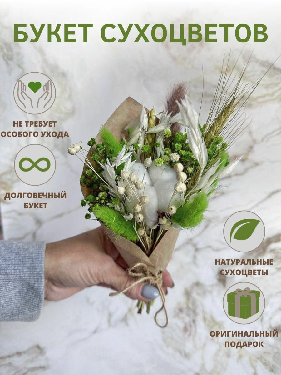 Сухоцветы, стабилизированные цветы, декоративные цветы, искусственные цветы, букет из сухоцветов, лагурус