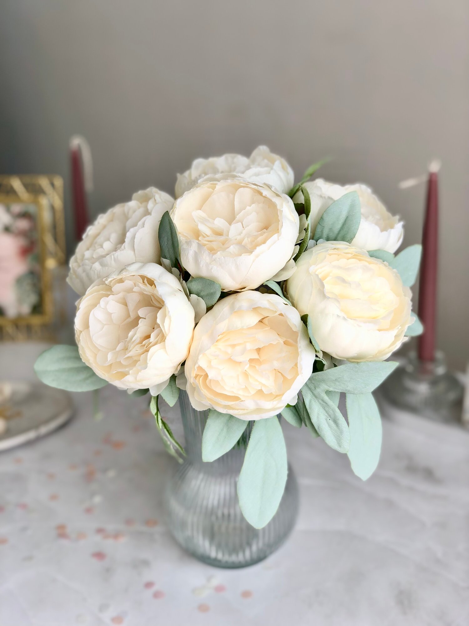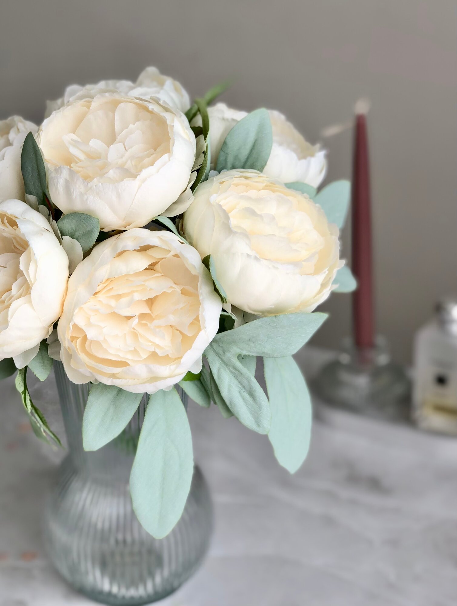 Купить Искусственные цветы пионы для декора / Декоративный букет / Цветочная композиция, 43 см, кремовый