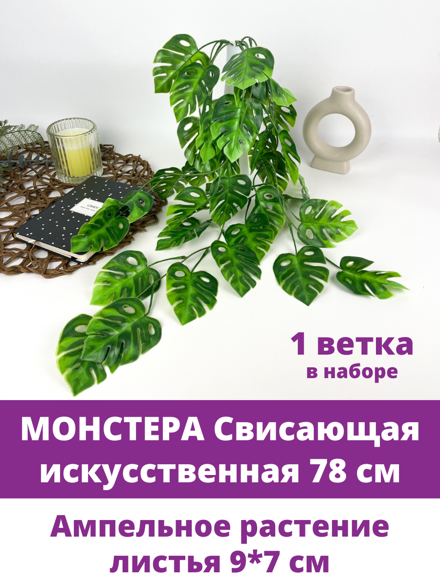 Купить Монстера свисающая, ампельное растение, искусственная зелень, цвет зеленый 78 см, 1 шт.