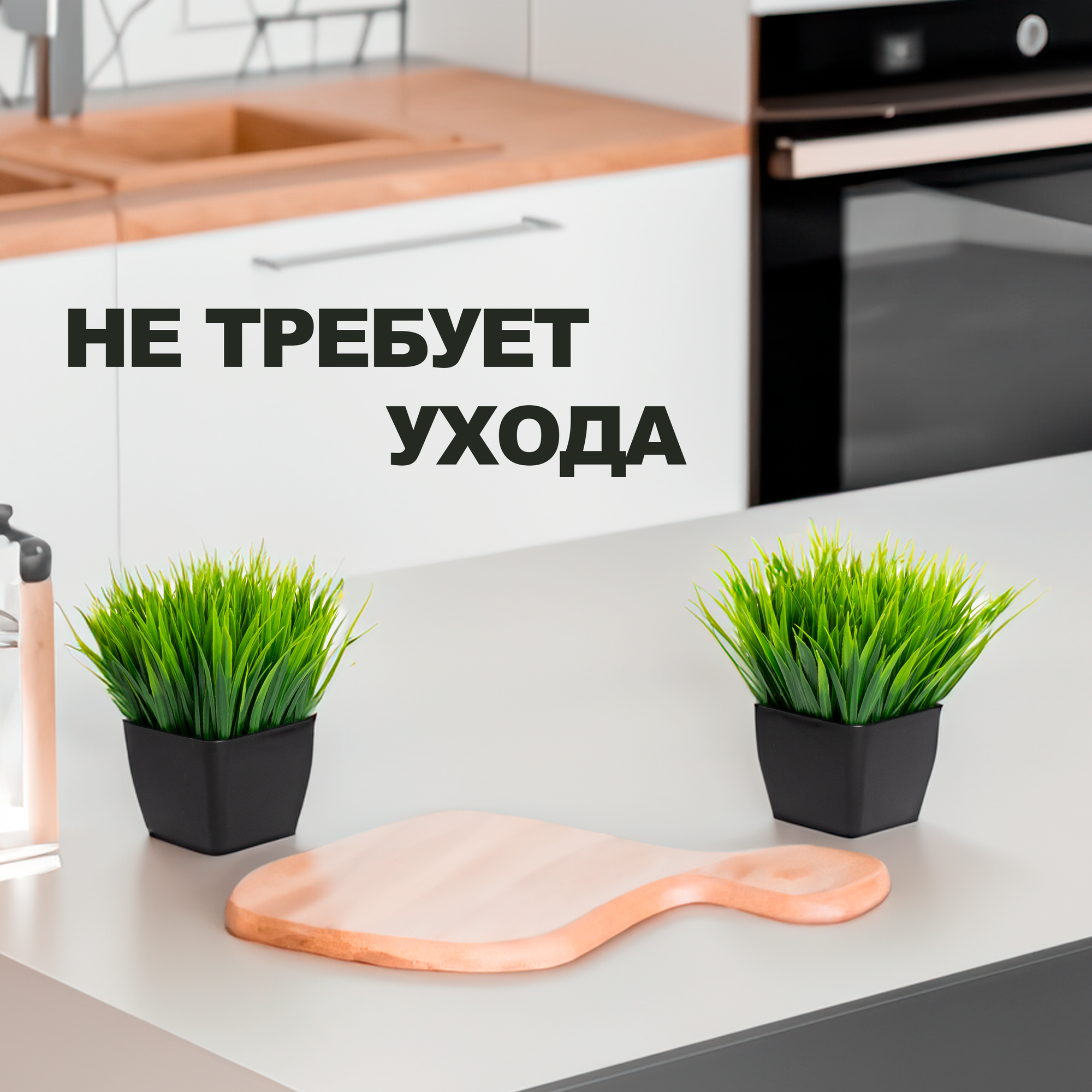 Искусственные цветы трава в квадратном кашпо декоративная для офиса, ванной, комнаты 2 шт