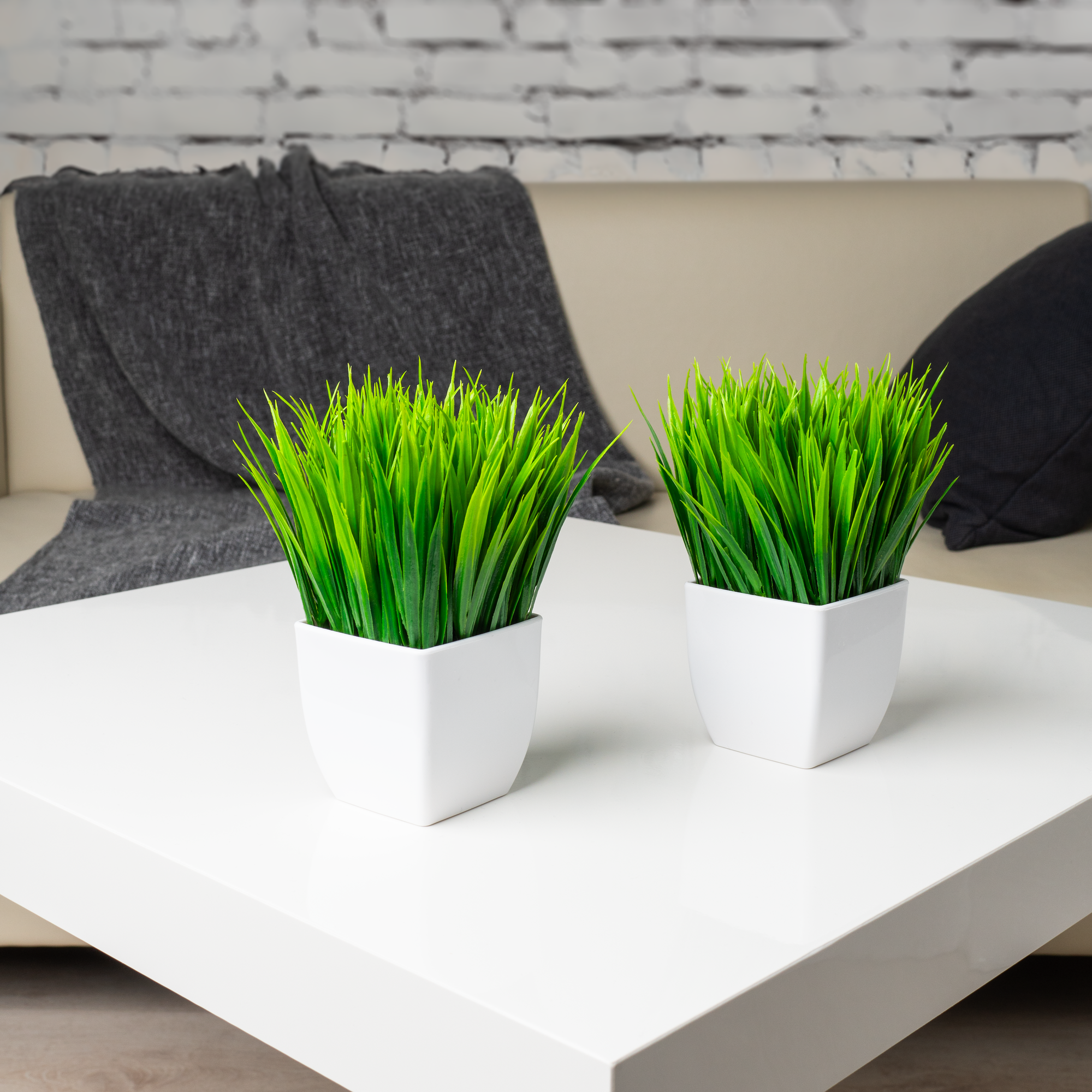 Купить Искусственные цветы трава в квадратном кашпо декоративная для офиса, ванной, комнаты 2 шт