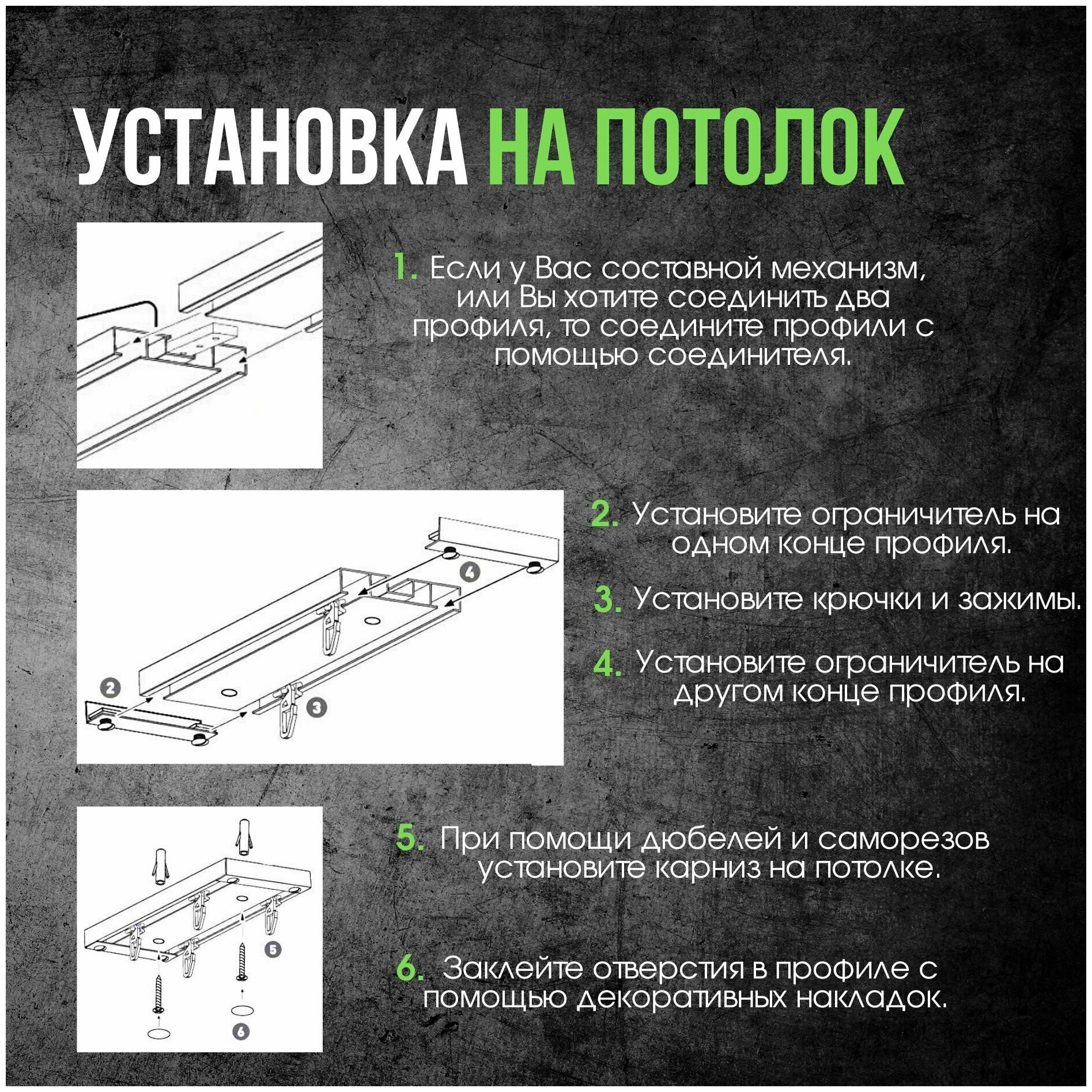 | Комплектация | Штанка-профиль, торцевые заглушки, потолочная пластина, крючки, соединитель. Всё для монтажа, инструкция. |