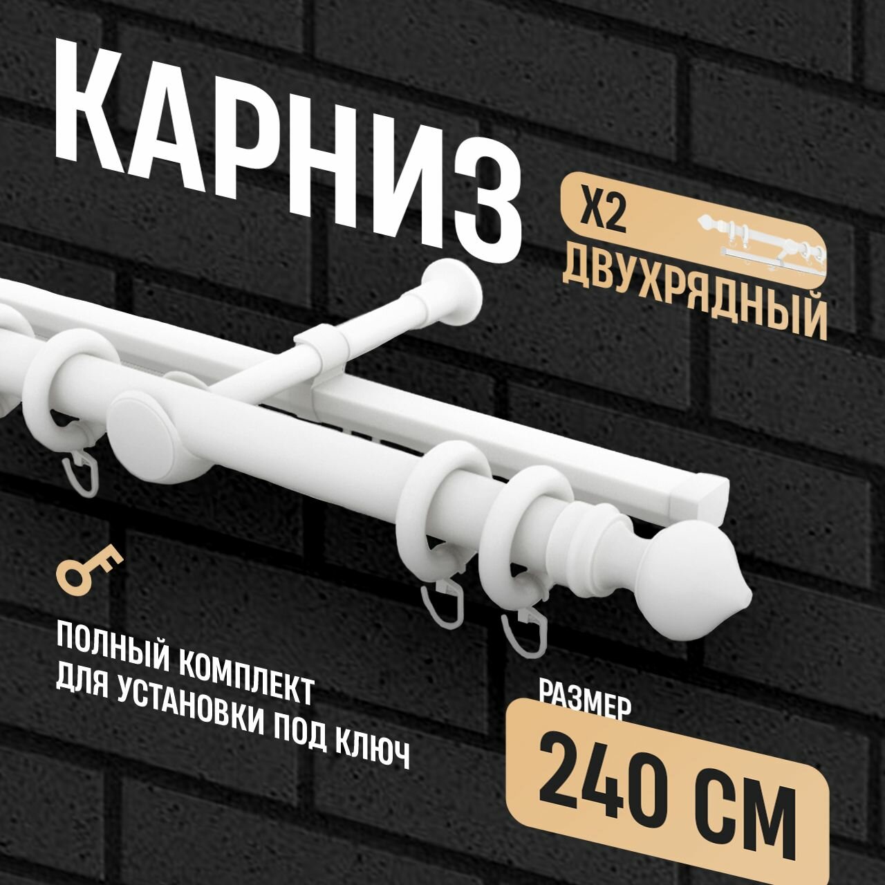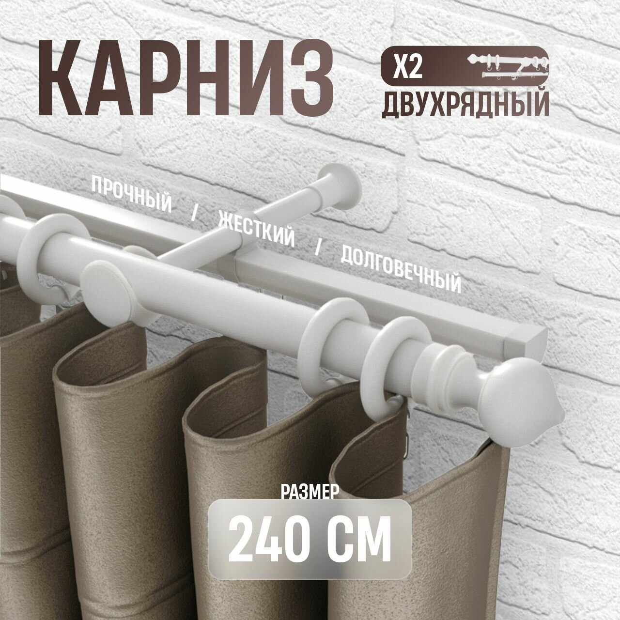 Карниз для штор двухрядный металлический белый, 240см, составной интересное: