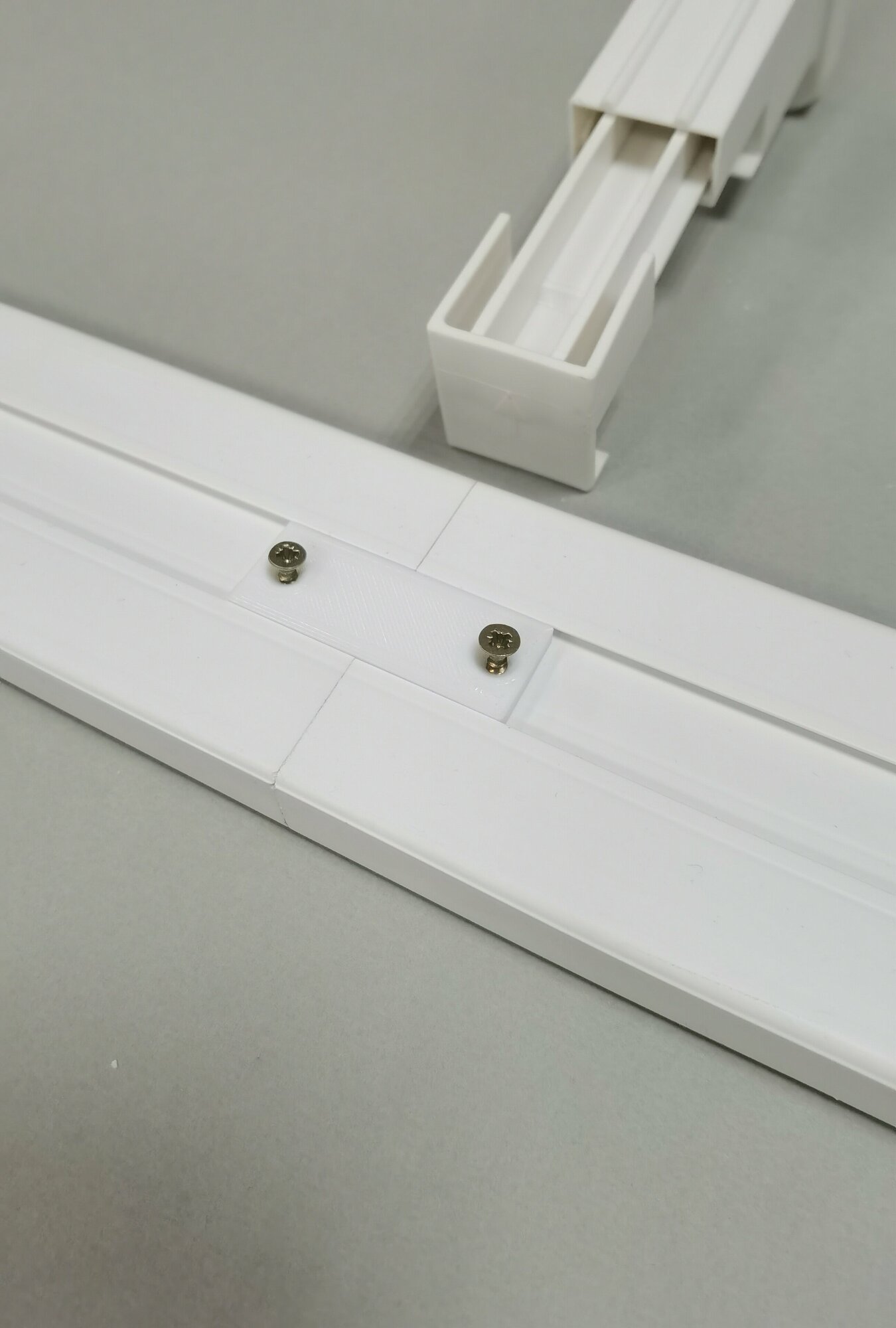 | Комплектация | Комплект состоит: составные шины длиной 1м или 1,2м; внутренние и внешние соединители, торцевые заглушки (стопор) - 4 шт; крючки — из расчета 1 шт. на каждые 10см карниза; дюбели и саморезы. |