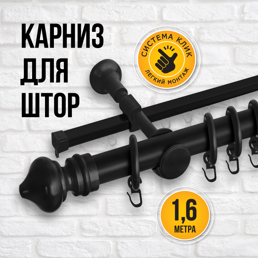 Купить Карниз для штор двухрядный металлический Delfa Скандинавия, черный, 160 см, гардина 2 ряда
