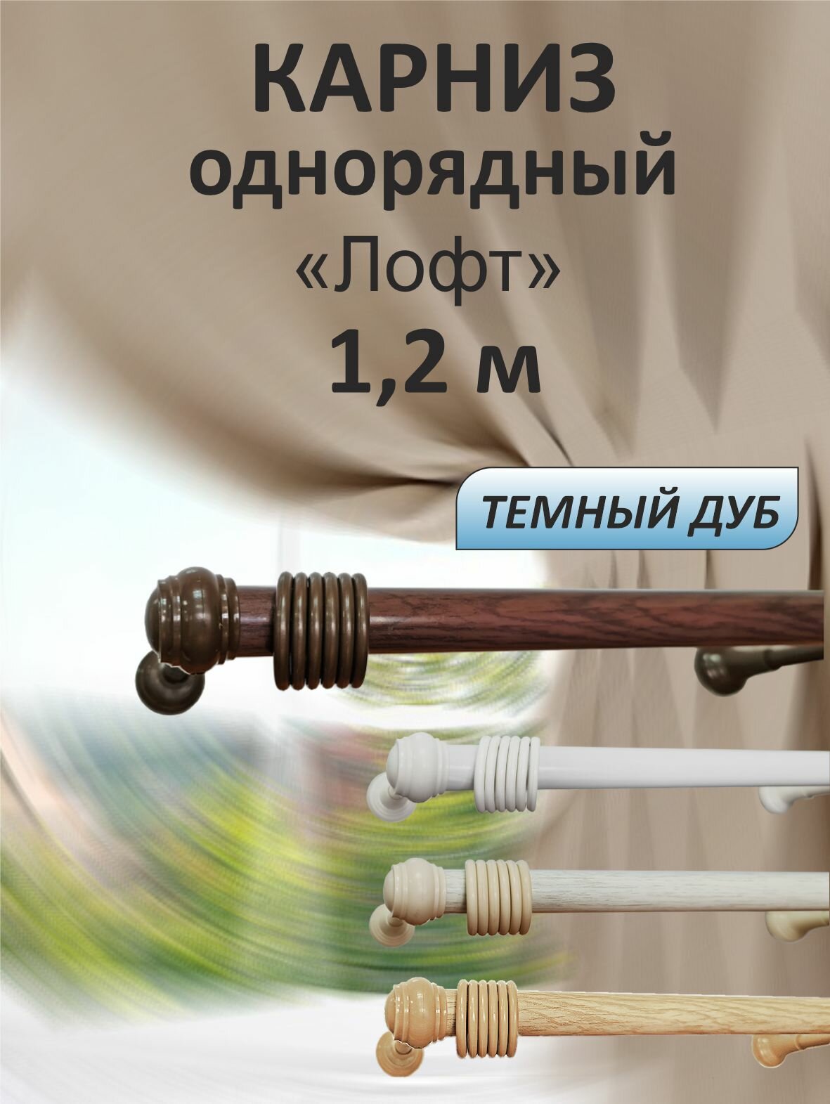 Купить Карниз для штор "Лофт" однорядный Темный дуб 1,2 м