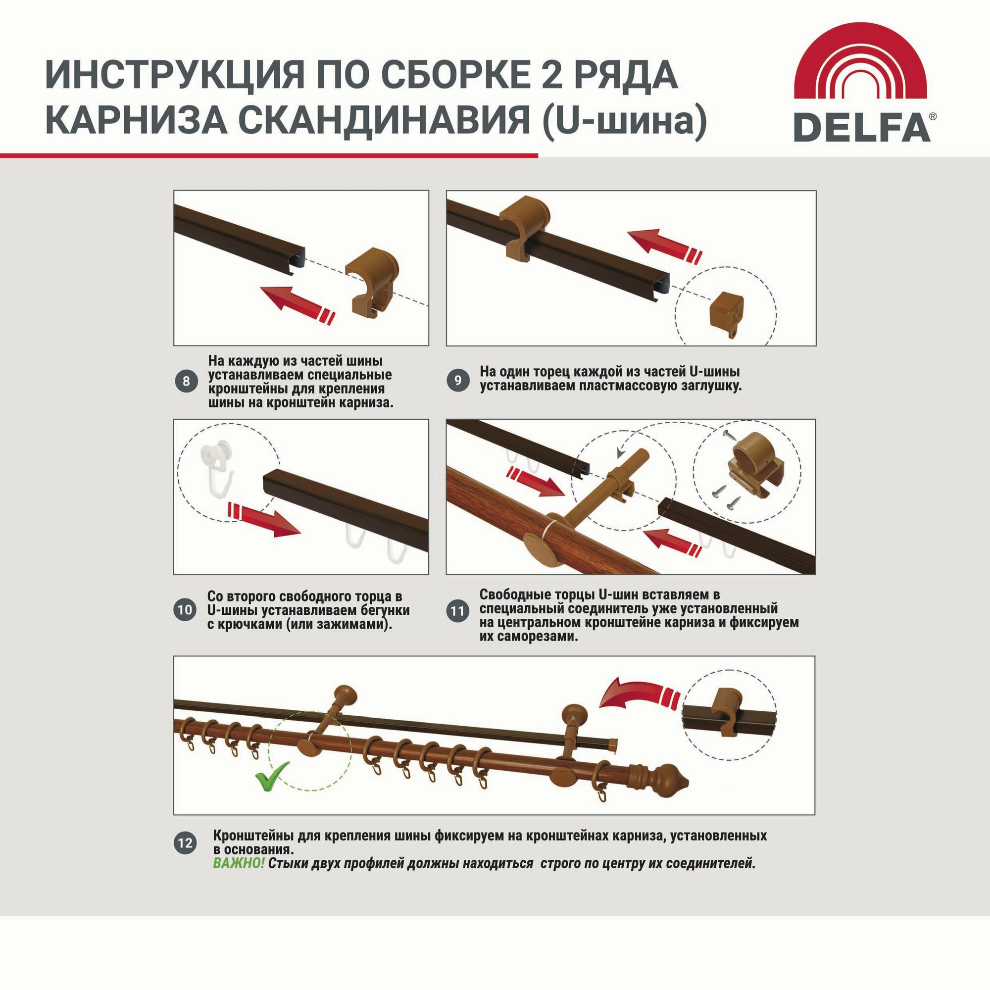 Карниз для штор двухрядный металлический Delfa Скандинавия, белый, 120 см, гардина 2 ряда