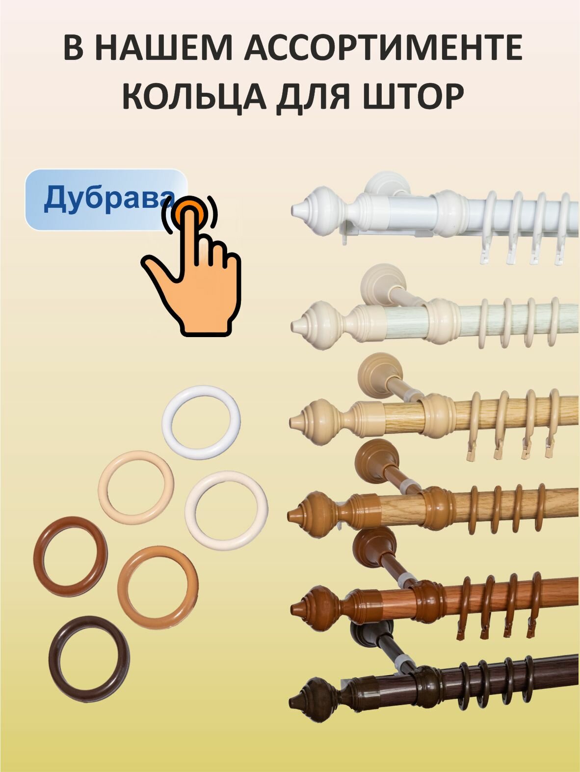 Кольца для карниза (дерево) с крючками на карниз д 28 мм-20шт