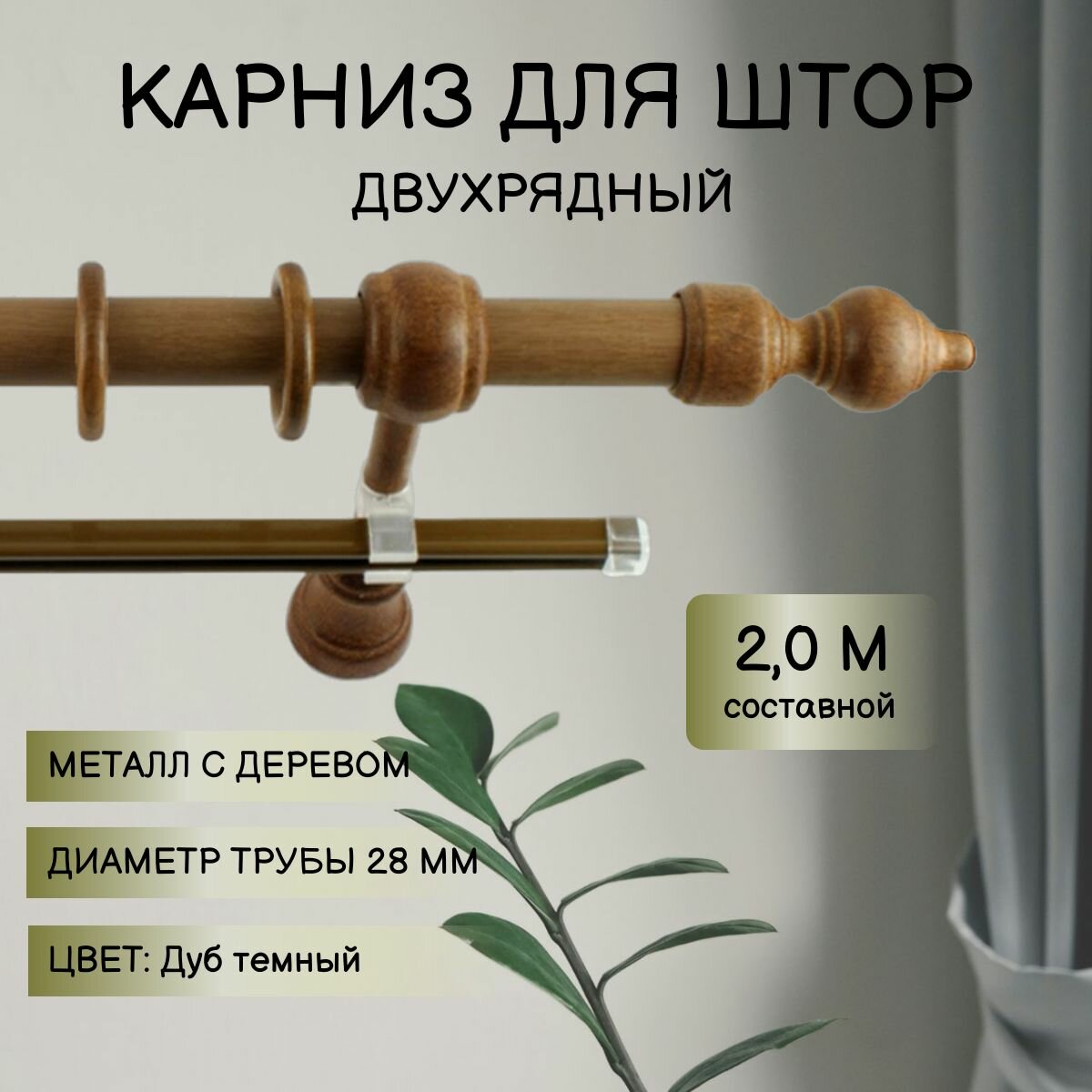 Купить Карниз для штор Металл/Дерево Дуб темный 2,0м составной