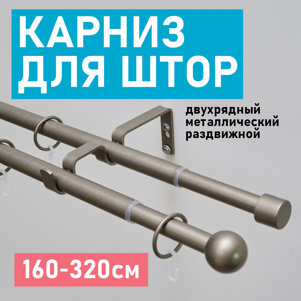Карниз для штор Трансформер 19/16 мм двухрядный шар 160/320см Сталь Матовая Скин