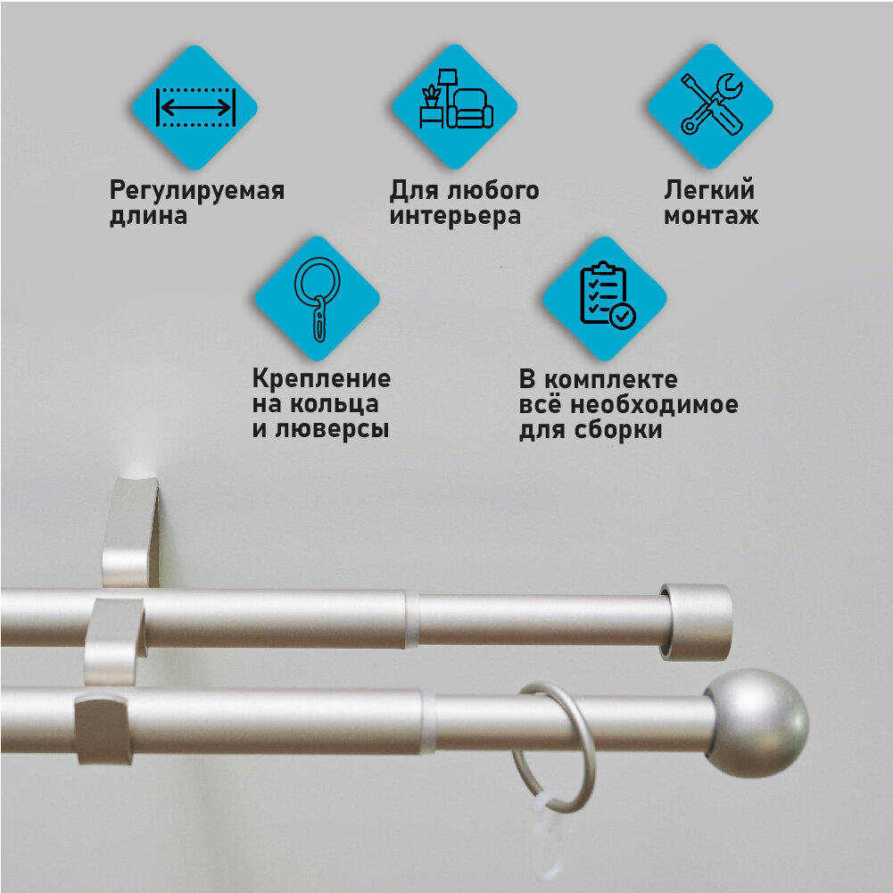 Карниз для штор Трансформер 19/16 мм двухрядный шар 160/320см Сталь Матовая Скин интересное:
