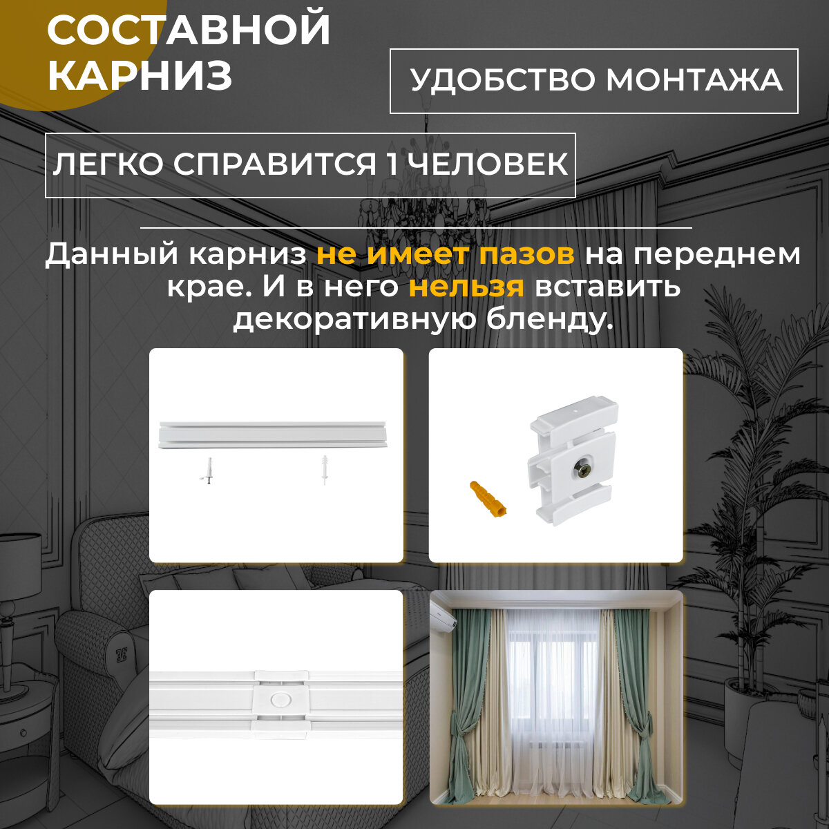 СохранитьКарниз потолочный двухрядный 360 см гардина с фурнитурой интересное: