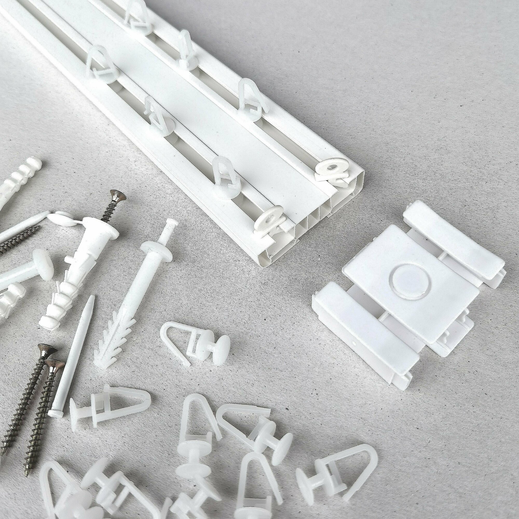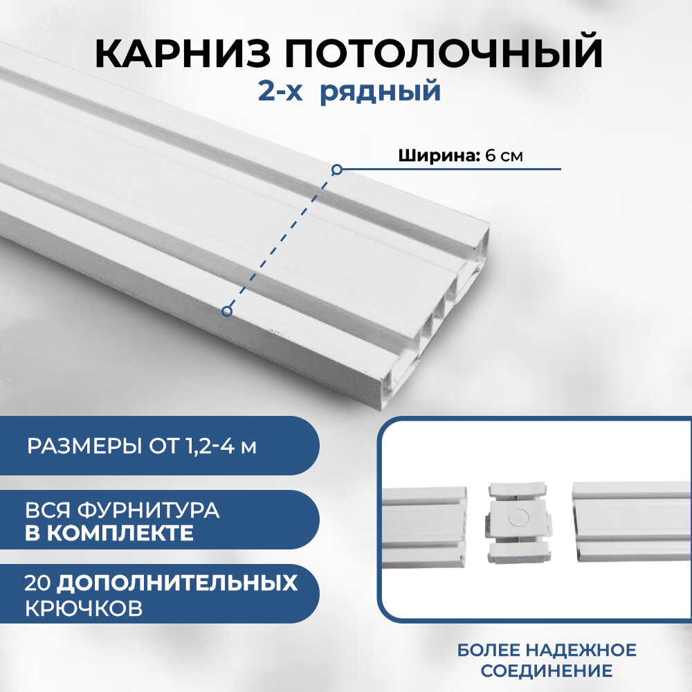 СохранитьКарниз для штор двухрядный 2,4 м составной потолочный пластиковый, гардина 2 ряда. интересное: