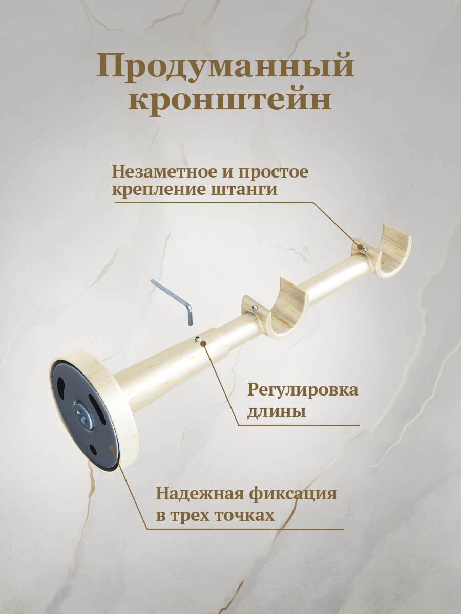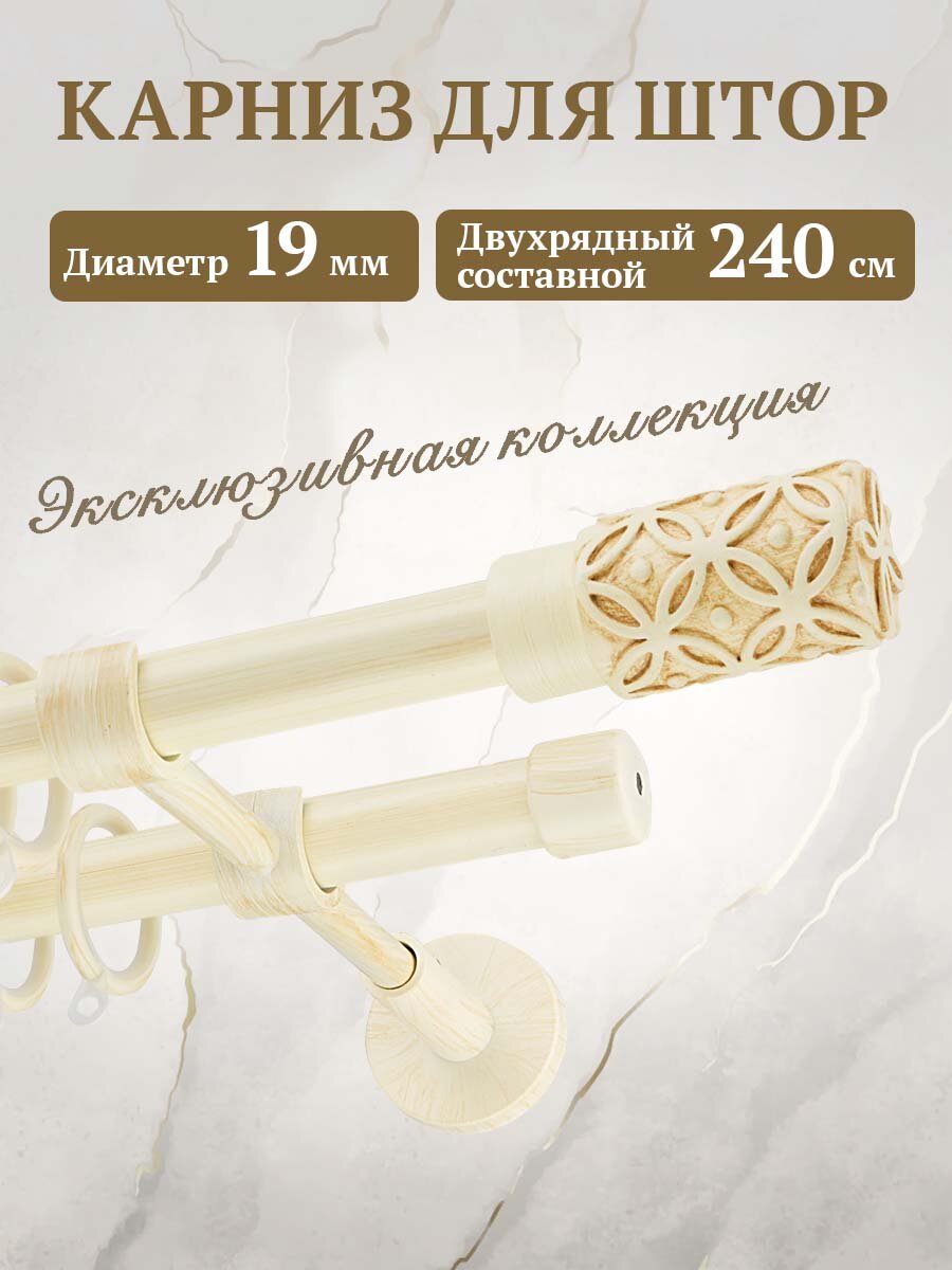 Карниз для штор декоративный двухрядный Слоновая кость 19 мм 2.4 м составной