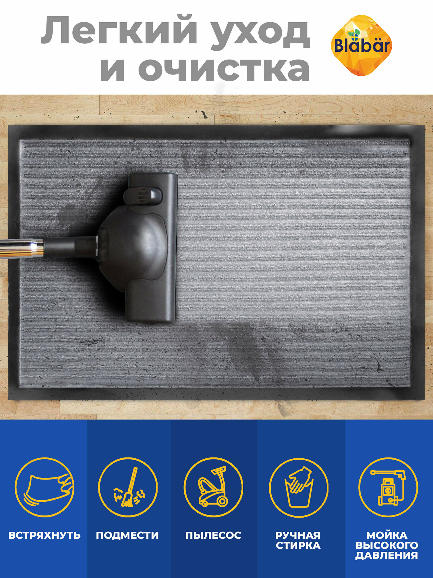 Коврик придверный грязезащитный 60*90 см серый Blabar влаговпитывающий в прихожую