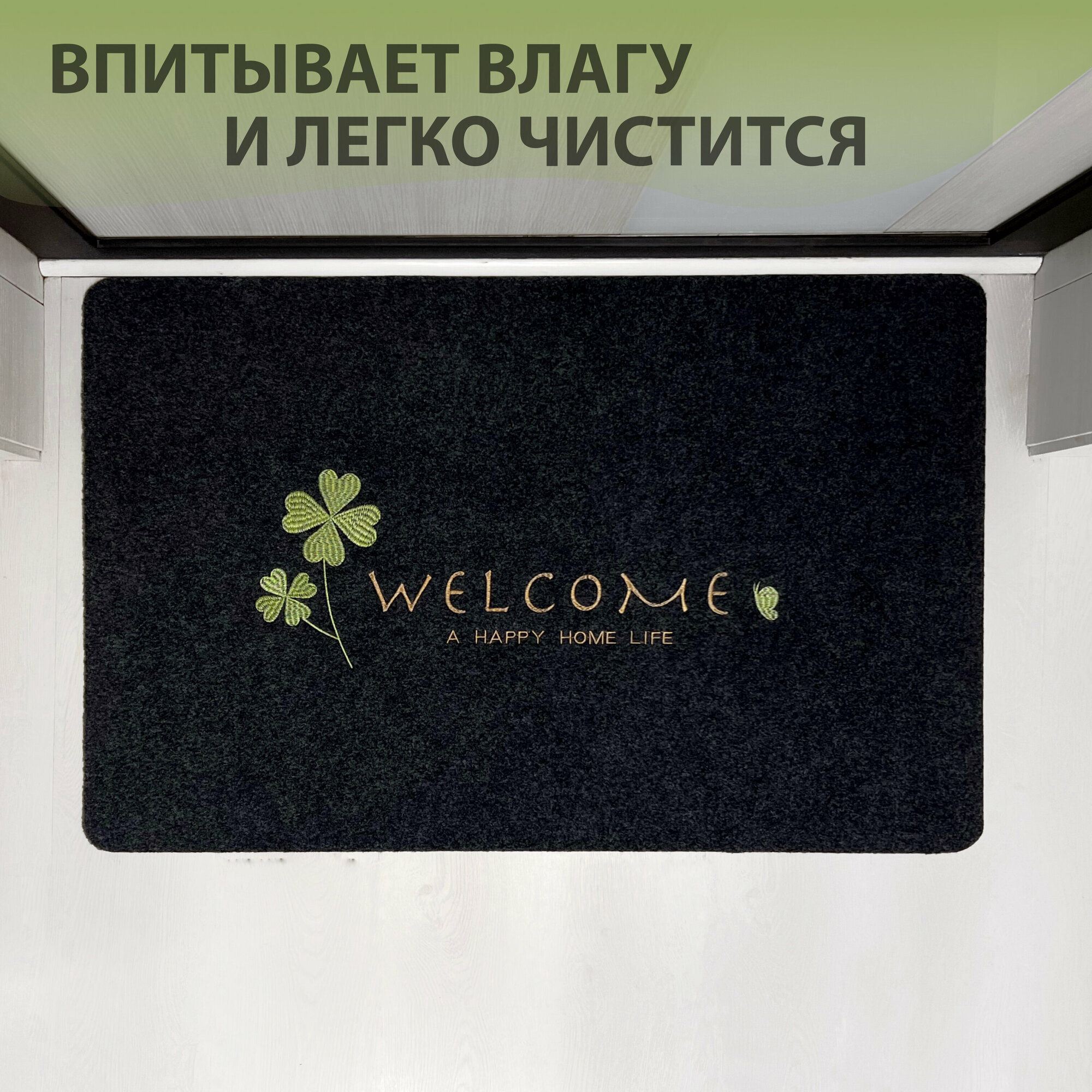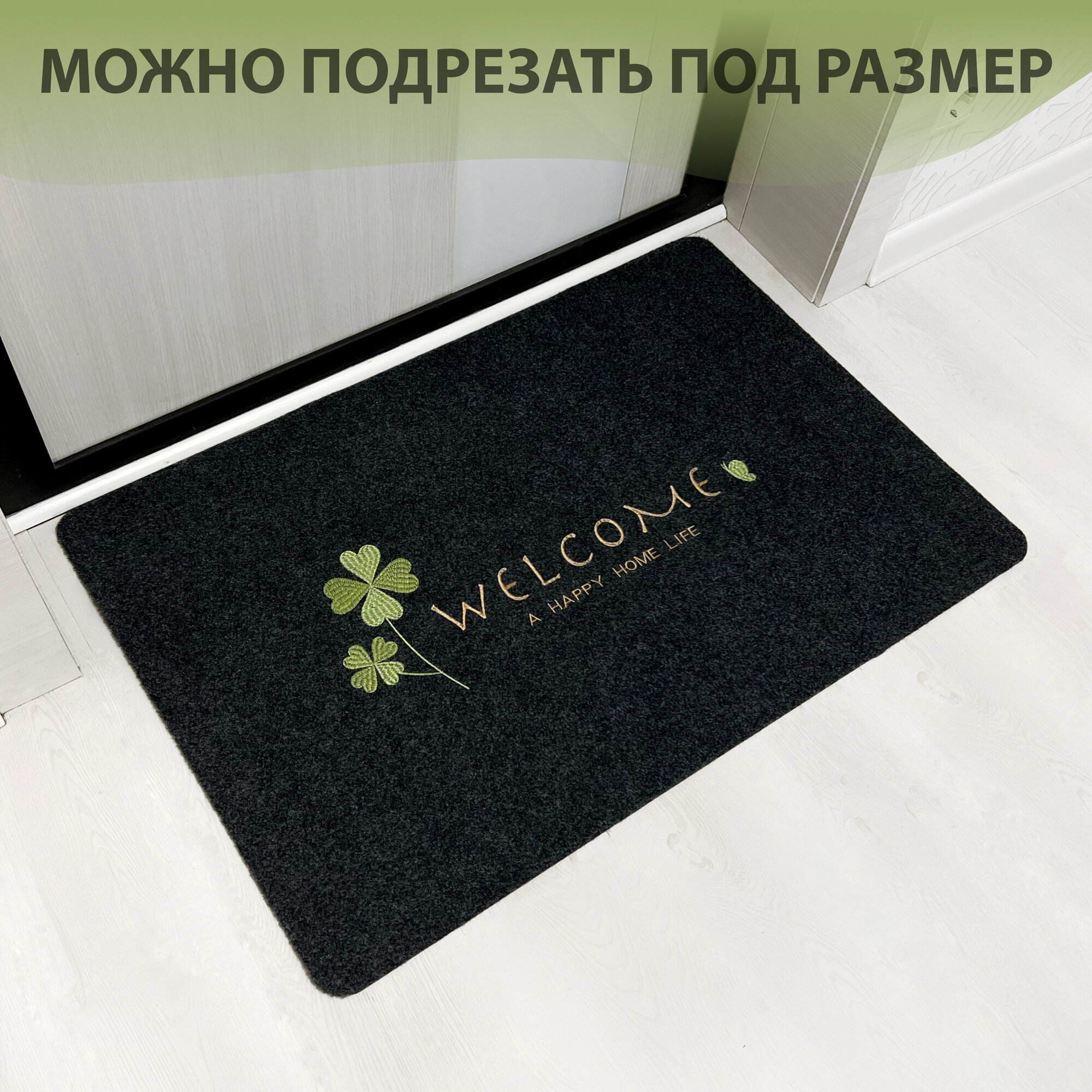 СохранитьКоврик входной придверный красивый под дверь ворсовый влаго-грязезащитный 60х90 см ребристый черный welcome с клевером интересное: