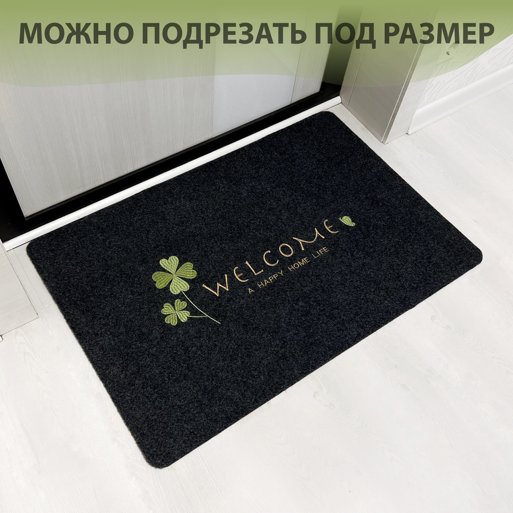Купить Коврик входной придверный красивый под дверь ворсовый влаго-грязезащитный 80х120 см ребристый черный welcome с клевером 80х120 см
